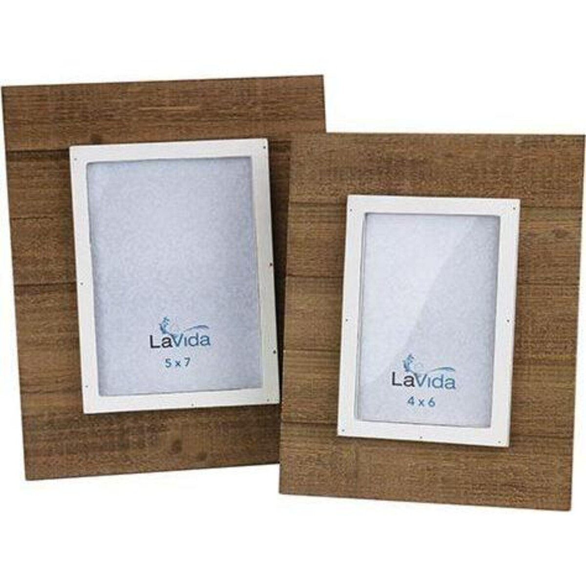 Home on to great quality frames from Lavida if pictures are the way you like personalizing your spaces. Here is one made with great quality wood whose grans makes the appearance so very rich. The frame has warm rich woody colour that has been left pretty much untampered. The rich sheen of age and weathering makes it look antique in its appeal. The inner frame in white strikes a bold note with its colour contrast and lends the picture it would hold a unique definition. The height of the frame s 28 cm and its width is 23 cm. It can hold a picture that is 7 inches in height and 5 inches in width. Enhance the look of the sideboard or the console table where you may wish to add a touch of nostalgia with some superb old portraits. Make a cluster of those memories and add a touch of warmth and comfort to your spaces with a touch of your personal favouties with the help of solid frames from Lavida.