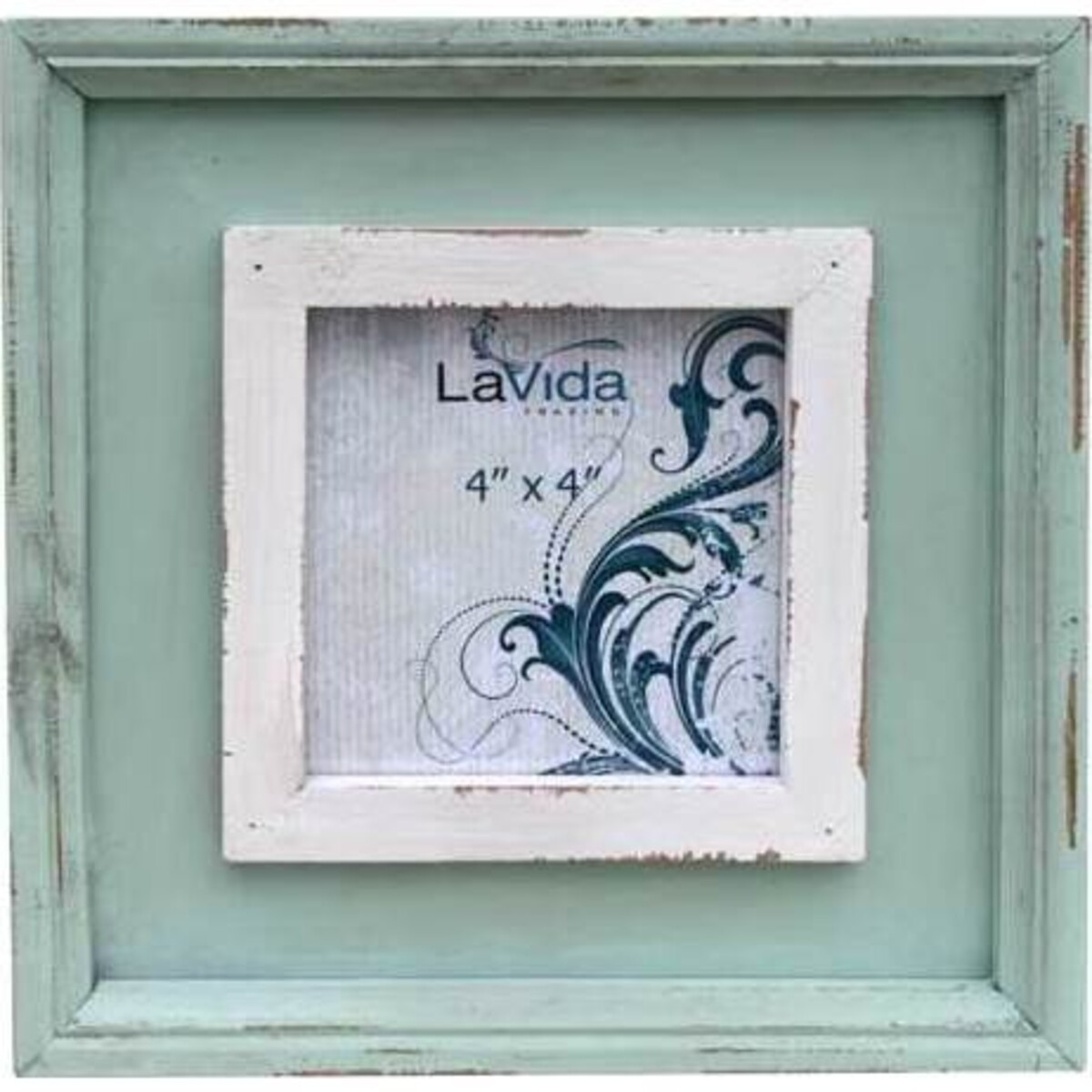 • The painted surfaces are lightly distressed to expose some of the natural wood, giving the frame a wonderful shabby chic look, like something that's been lying around in an old trunk in grandma's attic.