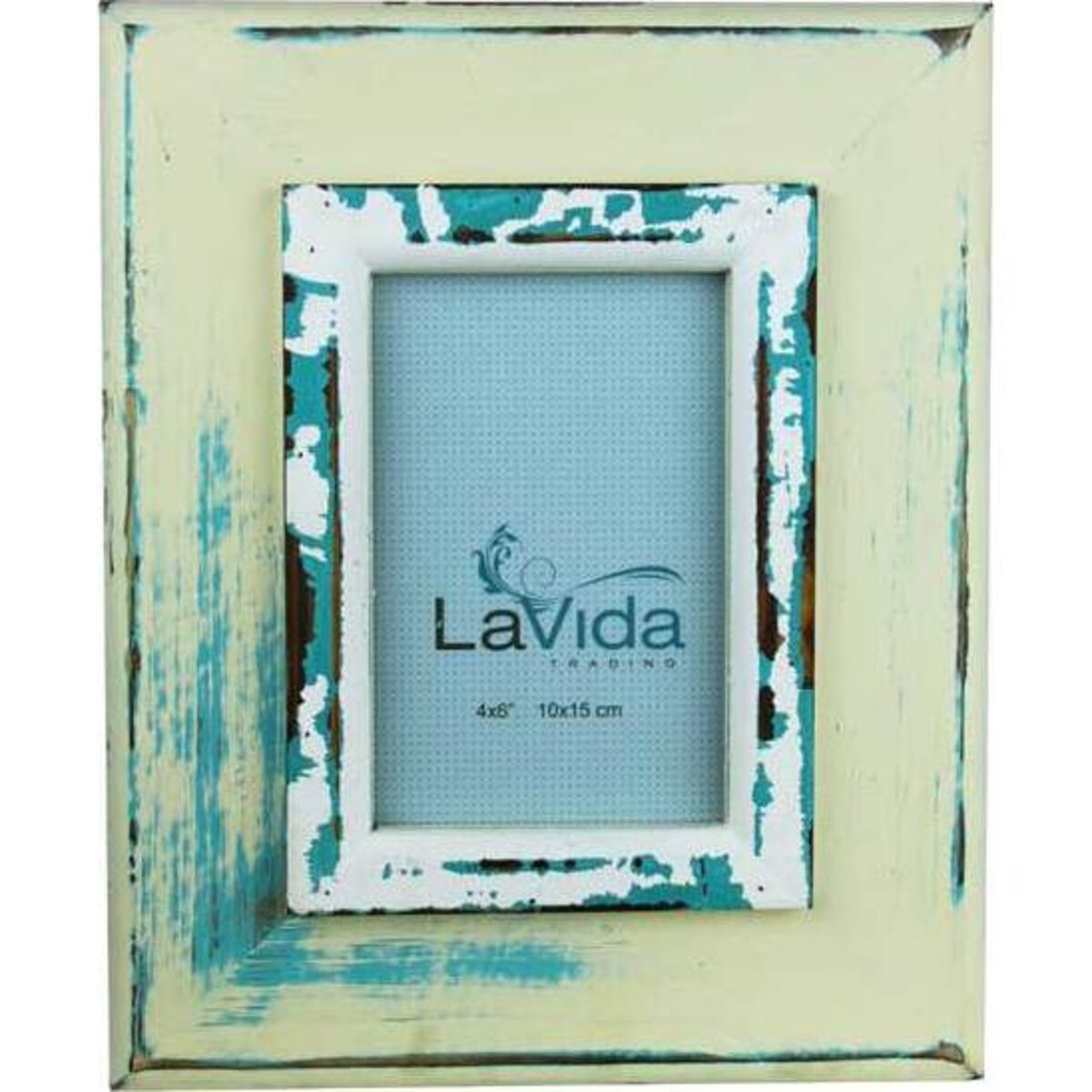 This picture frame has a character quite distinctly different from any other run off the mill line of products that one comes across as it has an eye on simple details and also the colour effect it has achieved through the distress treatment. Created from wood, the frame has a length of 29 cm and a width of 23 cm making it rectangular and thus it can hold a picture that is about 6 inches by 4 inches in dimension. The Sotto Teal photo frame looks truly vintage, with its peeling off paint and double frame look that is bound to enhance the appearance and the focus on the picture even further. The immaculate craftsmanship of the wood is evident in its neat ridges and its smooth edges. The back has a support that will hold the frame on its stand with ease and it also has a built in loop to allow it to be hung on walls to create a collage of great memories.