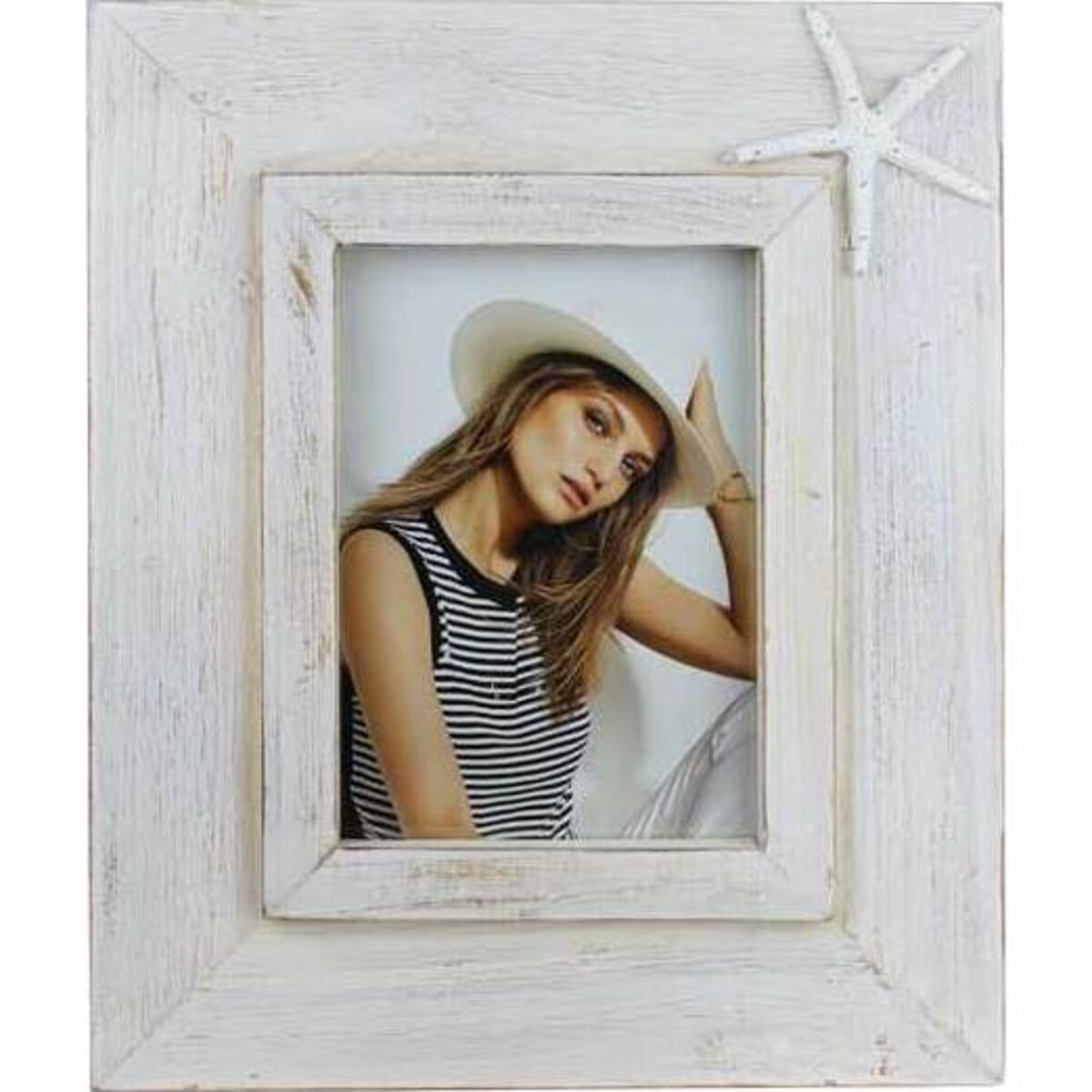 Pictures surely can make any space look more personalized and add warmth and good cheer to any part of the home - those are in fact the moments that one would love to look at over and over again. Finding a suitable home for those pictures would need one to get hold of the right kind of picture frames. This fabulous range of neatly handcrafted wooden frames add a touch of class and elegance while at the same time giving your joyous moments the right kind of highlight. This white washed look picture frame has a lovely starfish on one corner as if like a mascot for the memory. The frame is moderately wide and can hold a picture 6 inches in height and 4 inches in width. The back comes with a wooden finish, unpainted and with a strong support to prop up the frame. It also has a built in slot to offer one the option of hanging the frame on the wall.