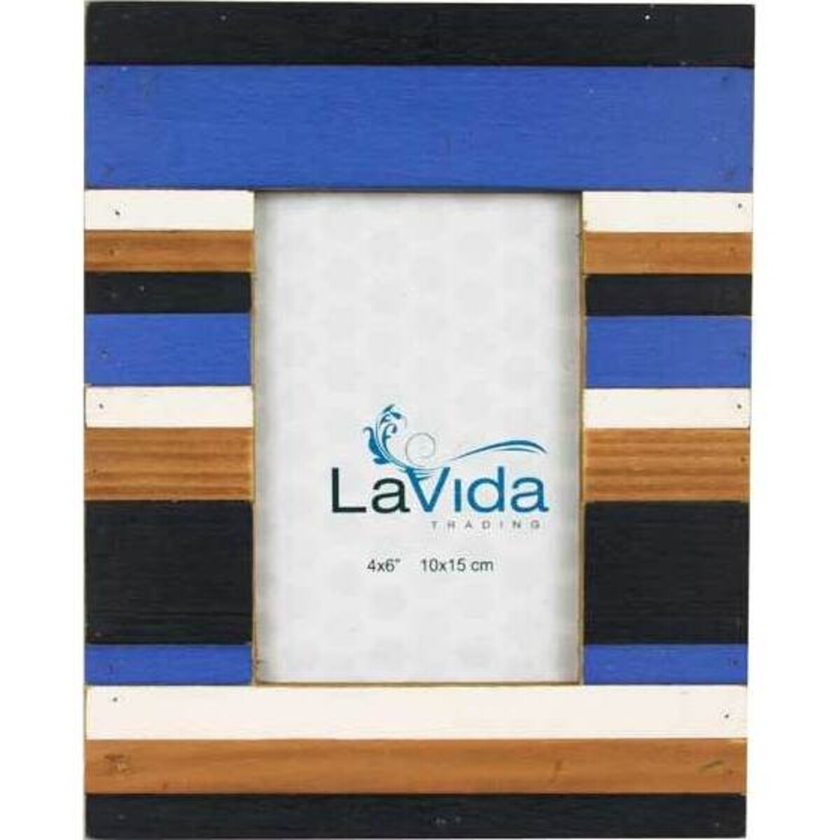Lavida has always created home decor pieces that are high on style as well as utility and when it comes to picture frames there is always the possibility that the onlooker would pick it up and take closer look which is why utmost care has been taken with their finish. Made of wood that has been given their distressed reclaimed wood finish, making them utterly shabby in looks, it will be loved for the style they add to the space. The blue and timber coloured stripes are randomly thin and thick and thus creates an impression of style. It would look bold and striking, holding within a 6 inches by 4 inch picture in its inner frame. The outer proportions are 24 cm in height and 19 cm in width with a provision of standing on the backrest.