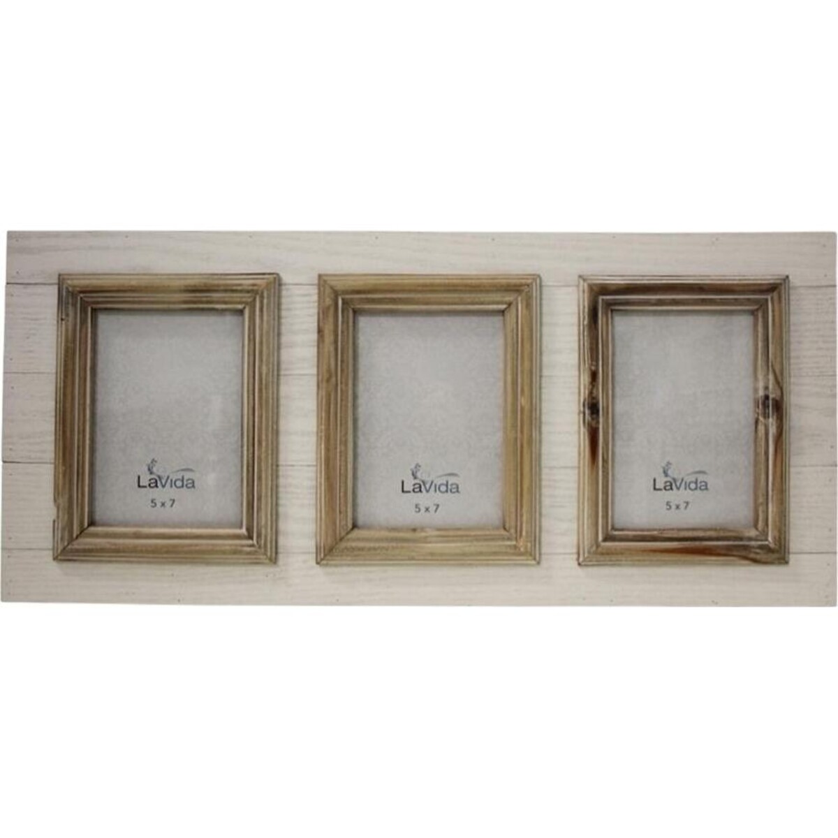 The three pictures could tell a story - maybe that of your growing up years - your friends or your siblings - there is so much that could be said with three pictures in a row. This frame with its gorgeous wood made white frame and inner frames made of natural coloured wood is stunning in its chic looks as well as its solid looking structure is impressively classic and elegant all at once. The frame is all of 65 cm in length and 28 cm in height with a thickness of 3 cm. Could be placed on the wall considering its rather large size. In fact smaller fames with family pictures could be used around it to create a tiny collective that could adorn a wall. The plain white outer frame shows off its woody nature as does the stark natural grains on the inner frames that brings our its country and barn feel. Perfect for making space resonate with more personality, warmth and a feeling of areal home.