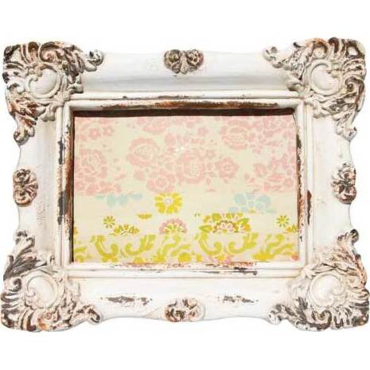 This frame has a traditional look with its heavy patterning and vintage-style thick frame. The colouring is soft and aged, giving it an antique look and elegance to suit many styles of paintings and photographs. The frame would be perfect on a mantelpiece, wall, or bedside dresser. The subtle faded white of this frame makes it perfect to meld into practically any room or environment, and a valuable tool for designers looking to employ an element of timeless class. The dimensions of 27 x 22 cm make this a compact and sturdy item that is not too imposing and easy to position or pack away for storage. Unusual and captivating, this classic frame is highly attractive and will certainly stand the test of time. For those looking to surrounded their valued images with an unusual and classy frame, this baroque-style item is sure to please.