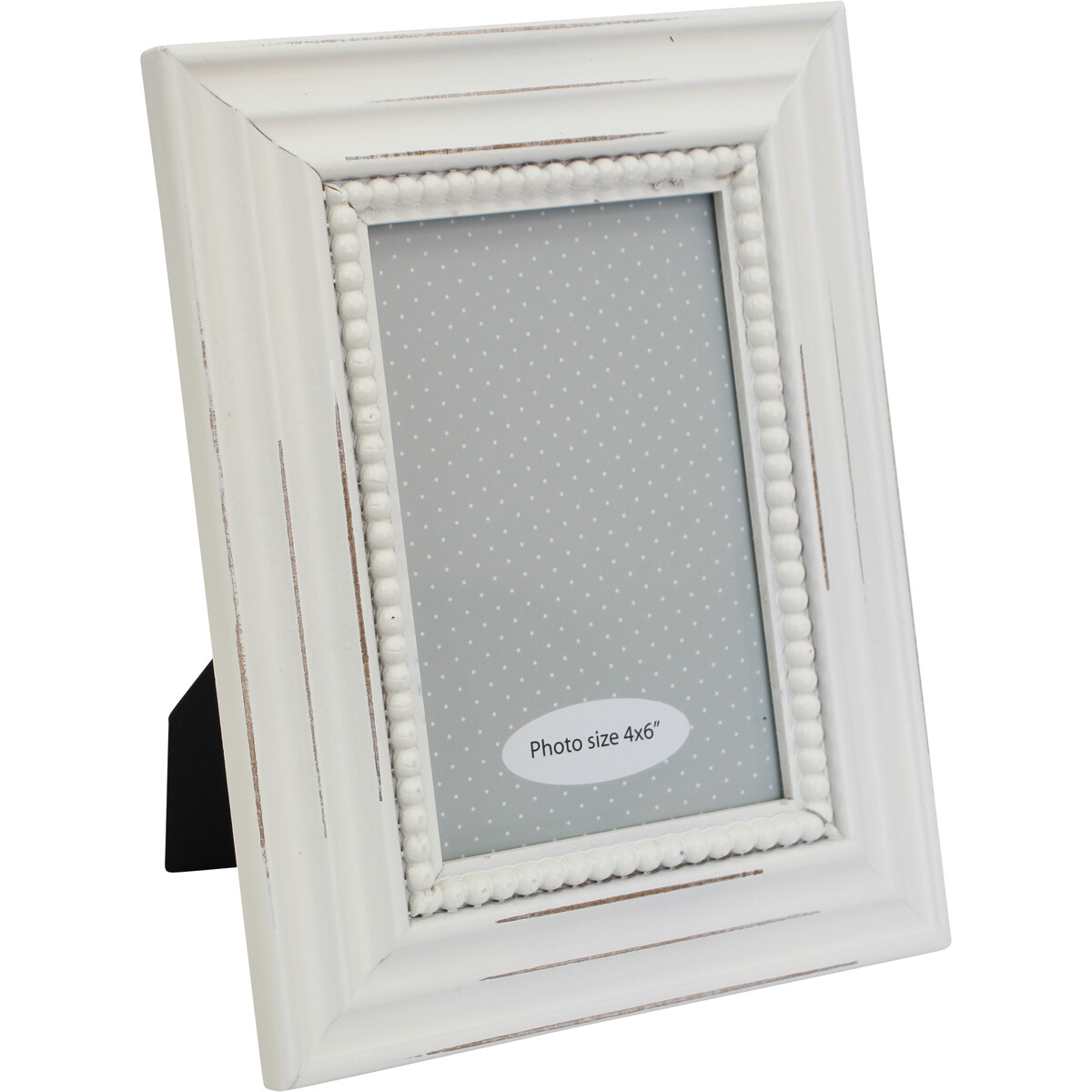 When it comes to making your spaces align better to your personality, what could be better than the range of frames on offer from Lavida. this one comes in a vintage white colir, with a ribbing and beaded pattern inner ridge helping bring more attraction on to the picture. The frae rest solidly on its back rest that help keep it propped up at different level. Can also be placed on walls-comes with the needed attachment and safety clip to keep the picture well held. Will combine well with all kind soft bale tops looks-be it on your bedside the console or the sideboard in the dining space.