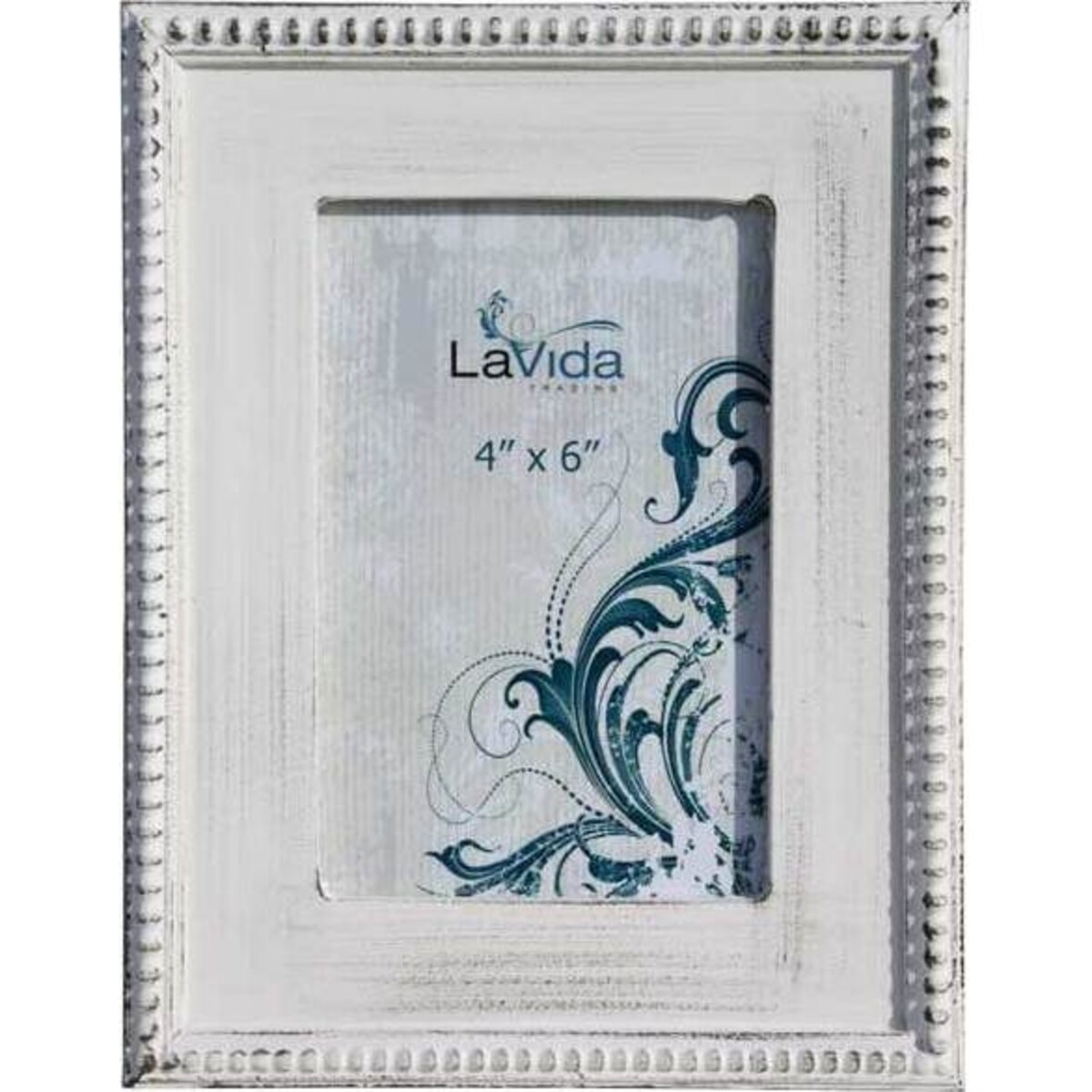 • The entire frame is given a wash of white paint for a wonderfully shabby chic or aged appearance, and creates a frame that's reminiscent of the 18th century when painted furniture was popular.