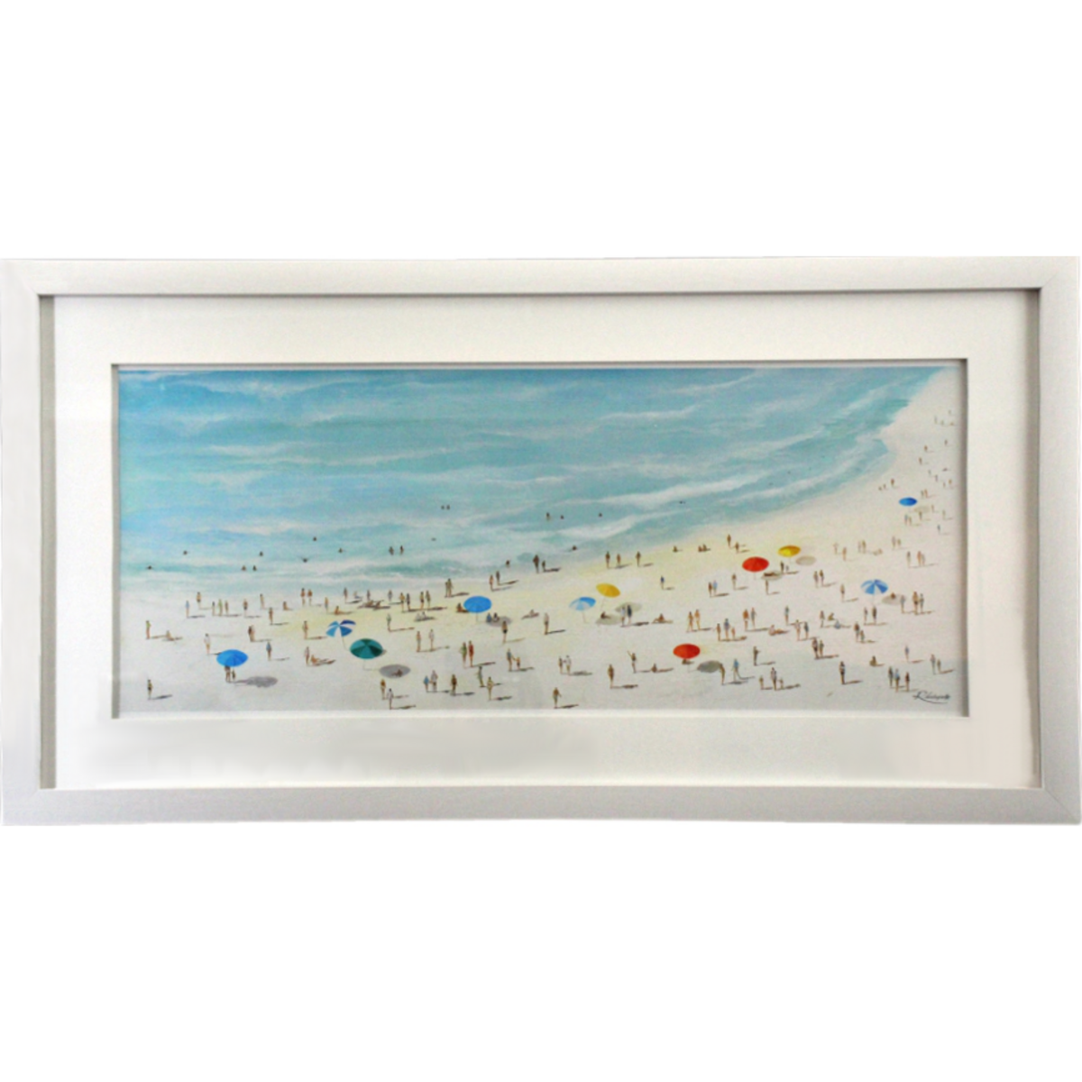 Life for you is at the beach and your heart years to be part of the fun and frolic there. Make this love be seen on your walls and give your beach and coast look home a spot of brightness. This hangable art work comes ready for your walls-beautifully framed in a white colour that allows the colours of the print look rivetingly attractive. The bright coloured beach umbrellas, the waves in blue with the surf breaking at a distance and multitudes of people thronging the stretches-a beautiful composition that will render your summer ready home the freshness that comes with things coastal. The white frame adds depth to the print. The high-grade printing ensures that the colours retain their vibrancy making a profound impact on the look of the space albeit subtly. The framed art is 47 cm in height and 88 cm in width, thus making it particularly suitable for larger wall spaces -perhaps behind the main couch or the space above the console, or the fireplace.