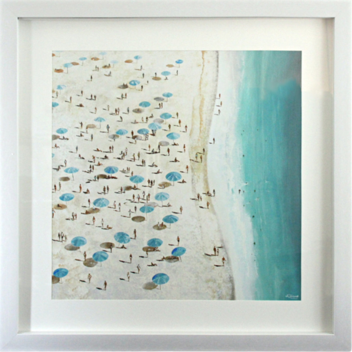 The most modern and vibrant framed art is on offer from Lavida allowing modern homes to collaborate them with all kinds of thematic and in this case the impactful artwork is a print depicting the beauty and the vividness of the each. The long stretch of the beach has been captured from the artist?s vantage point-far above from where the majestic view has been captured. People and umbrellas are mere dots and the undulated shape of the shoreline, such a pleasing sight. The blue waters meet the shady stretch in softest of mellow hues-an uplifting natural portrayal that will make your coast or beach themed home revive itself with whole new fresh feel. This artwork is 82 cm in height and width and the blue dots of the parasols with the golden beige sands are the only colours that stand out making this most suitable for your summer feel home .