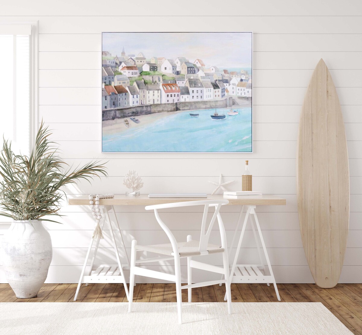 Our Framed Canvas Along the Coast has a warmth and dreamy vibe that you don’t get with most of the art on the market right now. And that’s down to its brushwork, the palette, and its hand-finished textural touches. The 80x100cm print stands out in any lounge, office, or hallway - but not in an overpowering way. The piece blends into contemporary, coastal and modern country spaces in a way that feels natural. Our team actually called this ‘gentle joy’, because there’s this sense of calm and cosiness in every unique canvas.