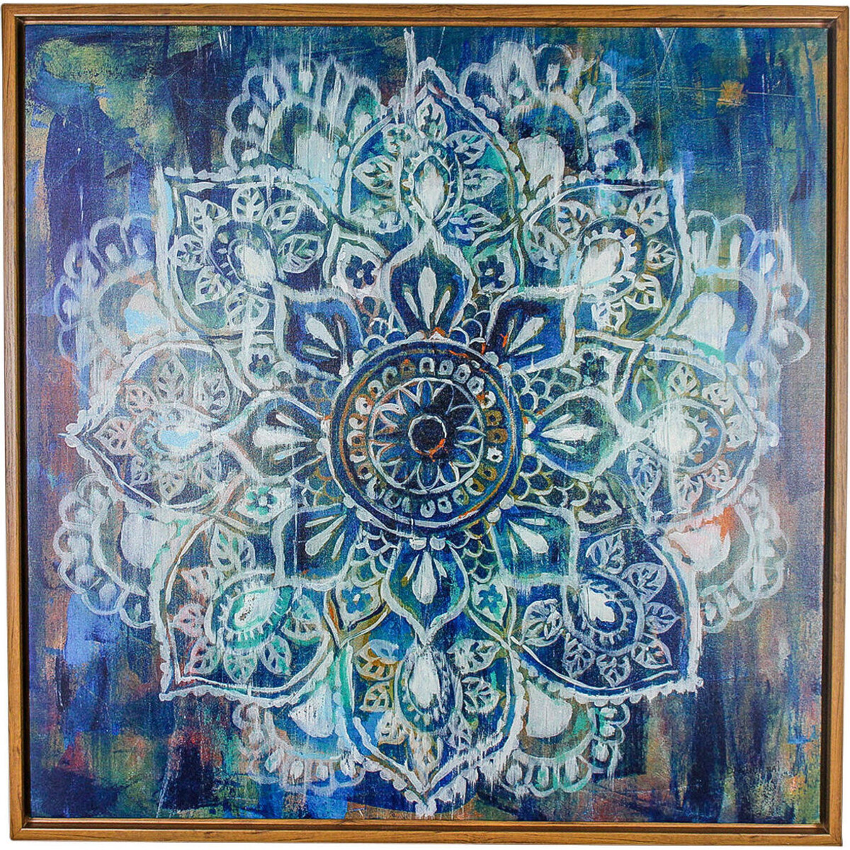 If your rooms is clamouring for attention and wants to lift the dullness away - what could be more needed than a stunning art work that brings the best in pattern and colour to your spaces. Here is one that will adorn your wall with colour and a provide a focal point in your décor especially if you like the look of things vibrant and eastern, the canvas features a mandala design that will elevate the centring in larger spaces and put that pop of bright indigo helping your home achieve that summery freshness through the colour blue of course the association of all things eastern that comes through the pattern will help you bend in rugs and throws that has similar vibrant colours and designs. Give the necessary colour and style update to your walls with one easy to place inclusion and lend the space whose new vibrancy. The blue and white colours as well as the pine framing gives it a fresh new appeal perfect for your new look space!