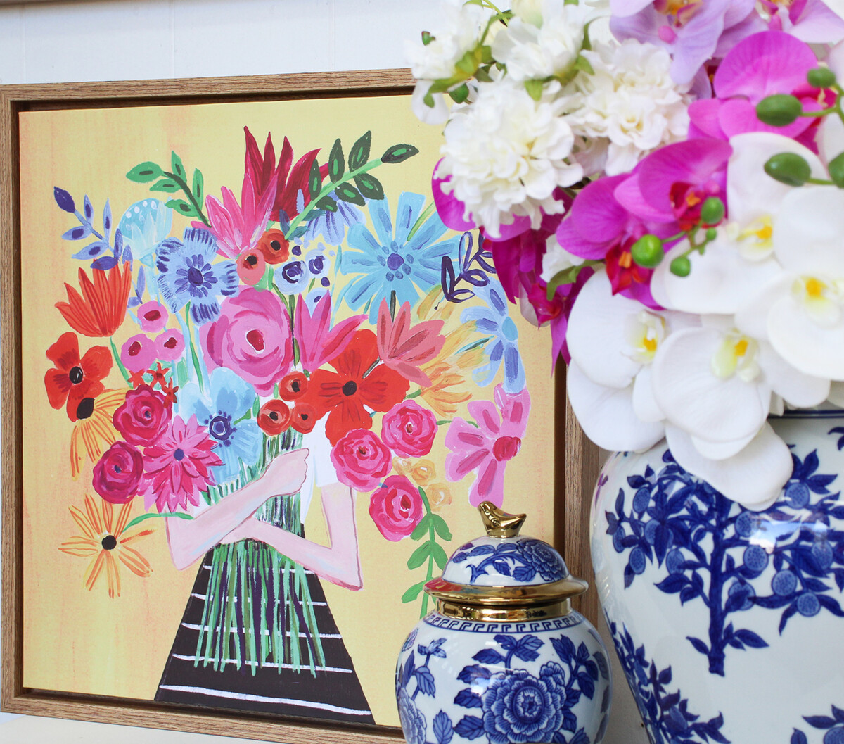 Adorn your home with this beautifully created canvas with the bloom of spring running like a breath of fresh air in your modern Australian home. This stunning canvas with an artistic flower bunch in dainty hands is the perfect touch of softness your home needs. Whether you put it in your foyer or entrance as a welcome piece or in your living room for a touch of warmth, this aesthetic painting never fails to leave an impression on your guests and you. Adore it every evening with a glass of your favourite beverage as you unwind, this helps you relax as you appreciate the art and feel a sense of calmness take over. Bring home this beautiful canvas or gift it to someone you love as a housewarming, anniversary or birthday gift- this canvas looks straight out of an artist's collection and would fit right into your loving home.