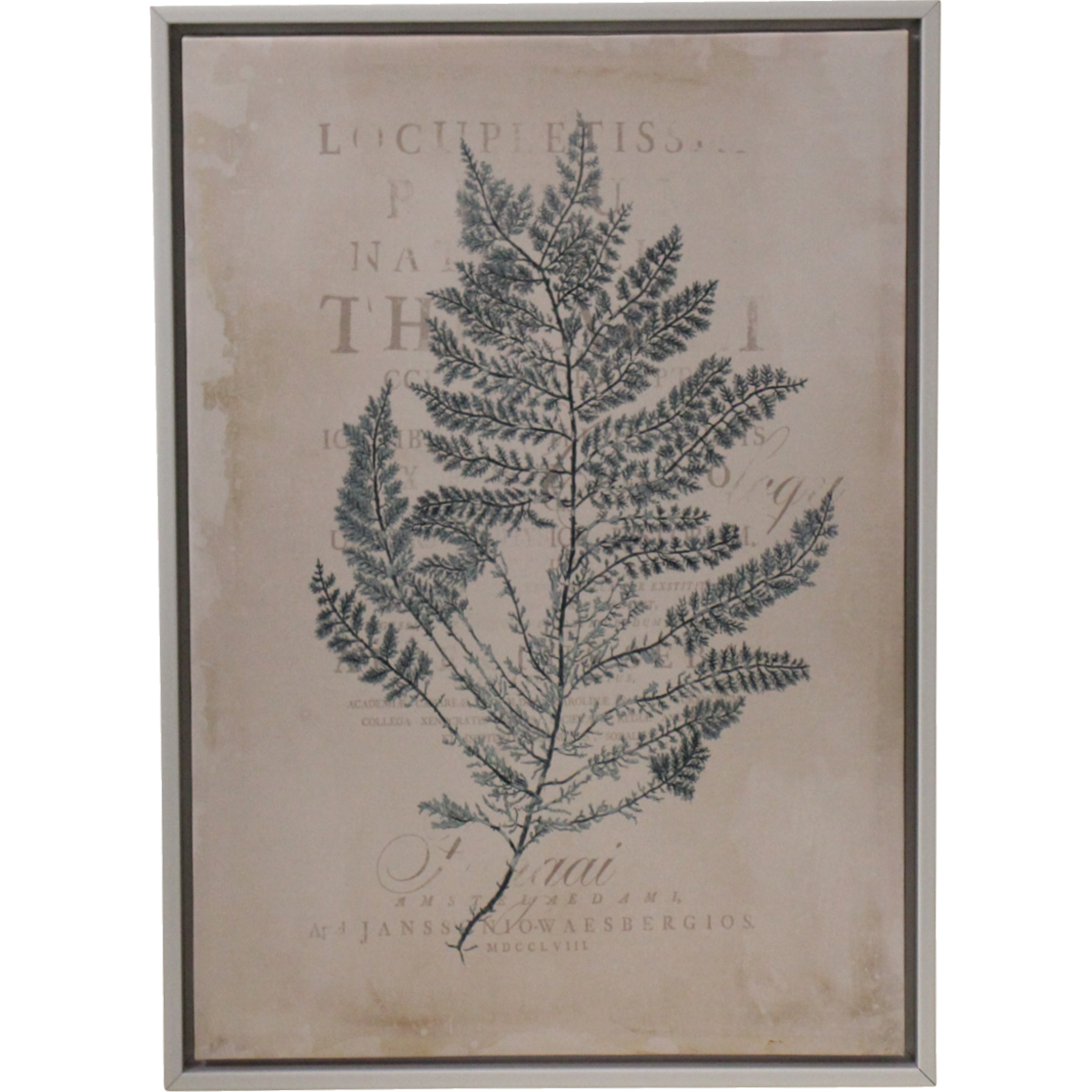 This piece is a great addition to a gallery wall and its rustic look goes with many themes thus complimenting any home or office space. The intricate fern drawing features a subtle colour palette of dark green and white, and the typographic details in the background add to its antiqued allure. Let it blend with your living room or guest room decor by sitting it on the wall above a sofa or table and then illuminate the area with weathered candle lanterns atop wood nightstands on either side. If you are doing the master bath and want a retreat then this ready - to - hang canvas helps give that feeling.