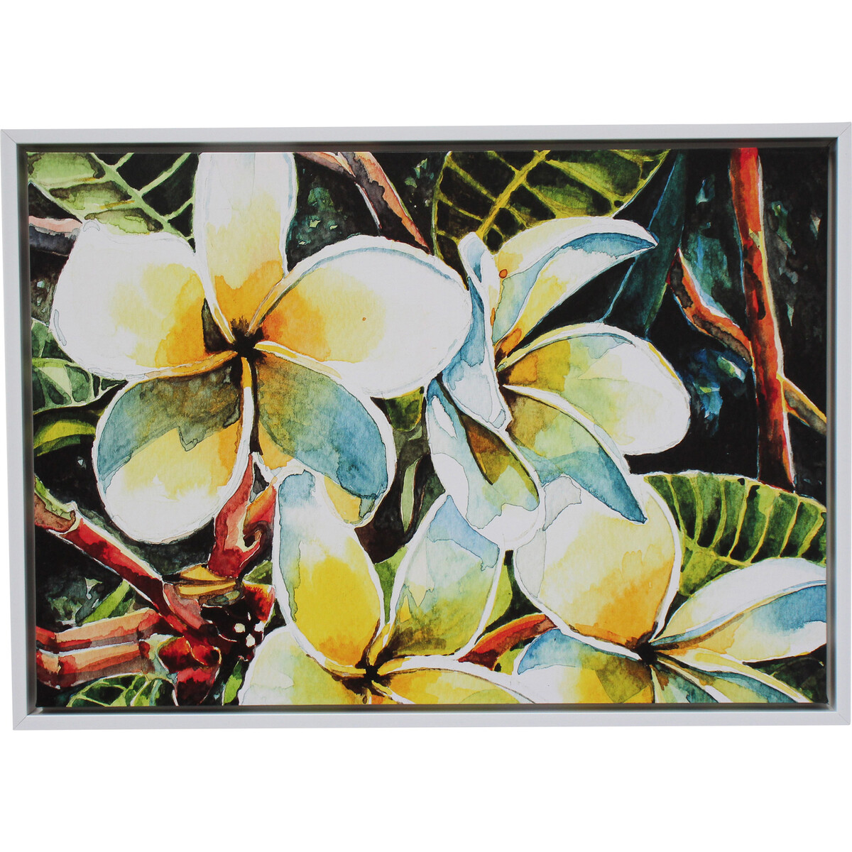 This artwork not only updates a room; it is a classic art for a modern interior style. Framed Canvas Frangipani motivates self-esteem and sedates the mind. It can breathe a serene and relaxed atmosphere in one's home. It is etched from pine wood, a sturdy softwood that resists shrinkage. This frame is lightweight because of the pine wood. Its weightlessness does not compromise the quality of the product. The good part, no routine maintenance is required. This flower exemplifies eternity as a freshly cut branch still blossom. The aura this artwork brings makes it a thoughtful and personalized gift that will have a profound impression on the receiver.