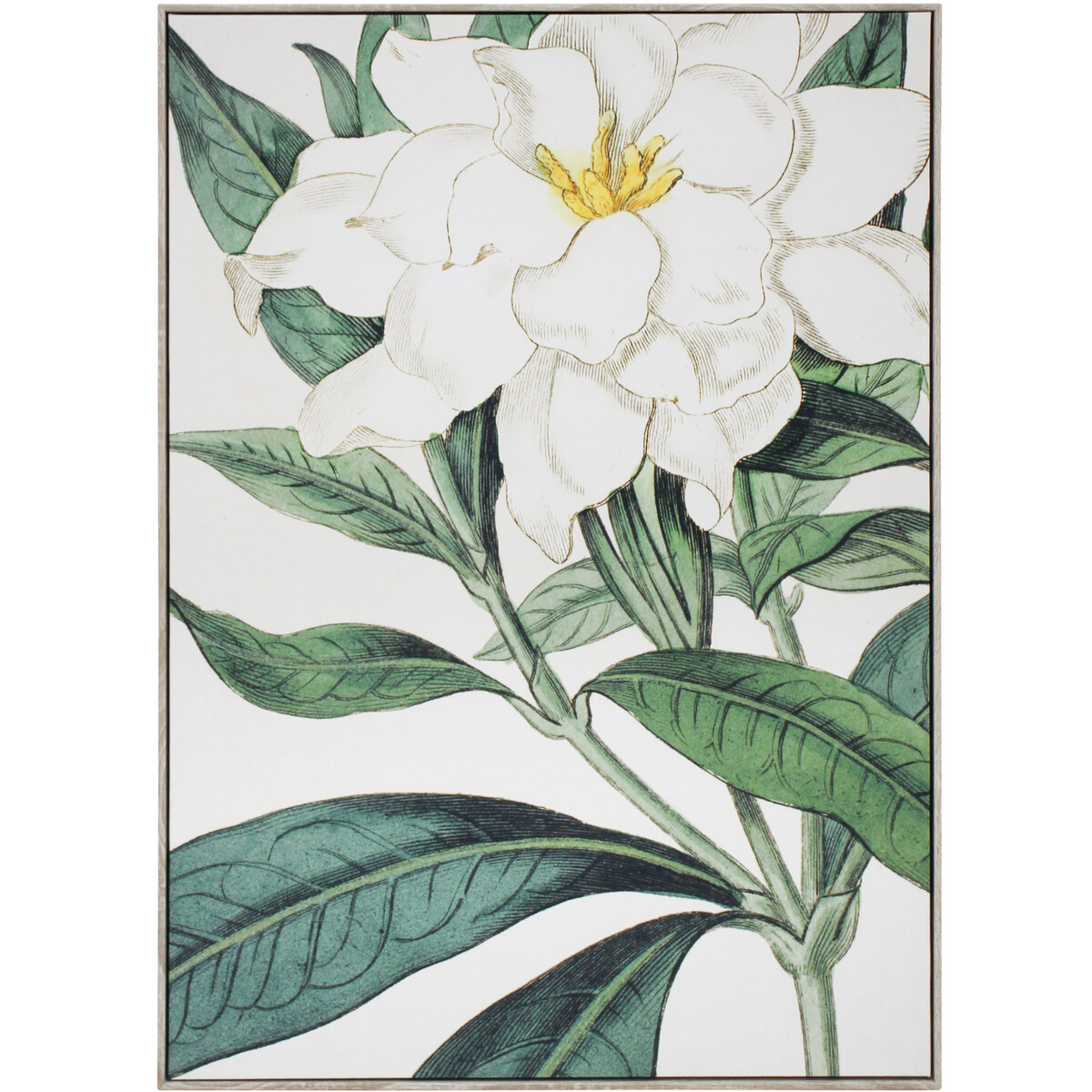 Homeowners can immerse themselves in the enchanting allure of delicate gardenia blossoms captured on high-quality canvas and presented in an elegant frame. Each stroke of the artist's brush reveals intricate details of the gardenia's petals, unveiling their velvety texture and graceful curves. The vibrant white blooms against a backdrop of lush green foliage create a mesmerizing contrast that instantly uplifts any room. The Framed Canvas Gardenia is an impressive masterpiece that was constructed with exceptional precision and great attention to detail. A combination of artistic skill and careful craftsmanship, it's a beautiful piece to own or gift someone special. Made from premium materials that add a touch of sophistication and durability to this stunning piece. The dimensions of the Framed Canvas Gardenia are meticulously chosen to make a statement without overwhelming any space.