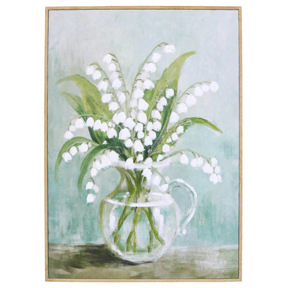 We absolutely love this Framed Canvas Jug of Flowers art. There’s something about a vase of lilies of the valley that just feels like joy - the sort of classic floral still life that instantly makes a space feel calm, elegant, and well cared for. We’re completely enamoured by the way this is painted - it’s got those traditional curves, creamy white petals, and leafy greens set against a gentle pastel background. The 50 x 70 cm size is generous enough for bedrooms, hallways, or cosy retail displays. But not too oversized that it dominates - it fits above cabinets or in small entryways with zero fuss.