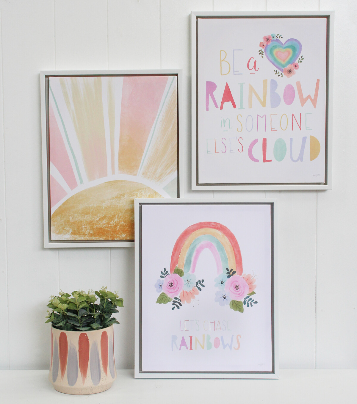 Art is an imagined reality and when the artist delves into dimensions of that subject there is no limit to that-here is a take on 'sunshine' that looks simple and eclectic. The orange of the sun and the soft hues of pink that makes up the sun's rays adds a happy kind of warmth to any space. Add this to any wall that needs a little uplift and help lift the mood of the entire space. You could combine this simple depiction with the rainbow series to help build in more positivity in the space of your choice. Its simple and basic pattern makes it somewhat bold and impactful, modern and very chic. Artwork such as these on offer from Lavida make them a great pack for decor updates.