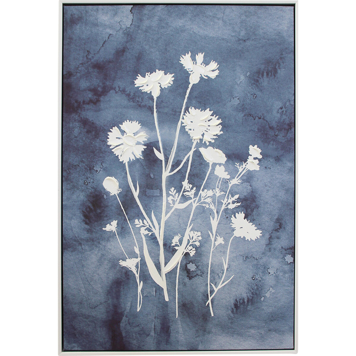 Using top quality canvas material, the story, theme and inspiration portrayed by this Framed Canvas Navy Breeze are numerous. Customers can interpret it to mean calmness in the midst of turbulence, beauty in the midst of ugliness and so on. These and many more interpretations which this visually arresting print artwork is open to are based on the pristine white floral painting which shines brightly in contrast to the gloom looking deep blue background. The frame is 40 centimetres in length and 60 centimetres in height. Due to its savvy choice of palette and theme, it would blend in with all decorative settings.