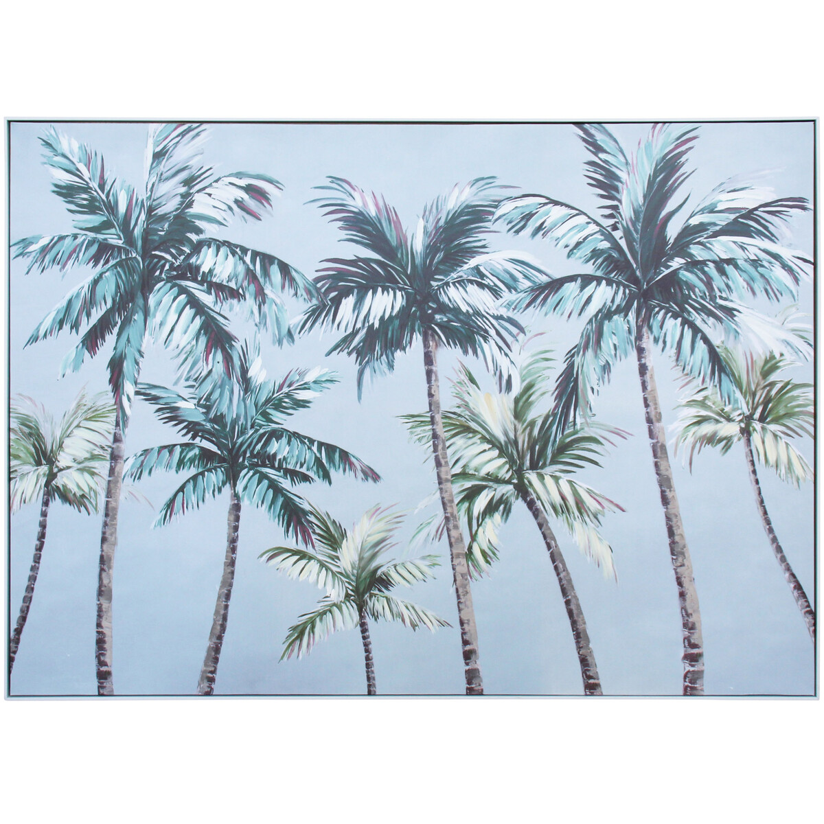 We can't be the only ones who sometimes need a little escape from the world - and our Framed Canvas Paradise is here to deliver just that. We love how something as simple as a large framed print of palm trees can instantly add that perfect dose of colour and relaxation to any home or workspace. This 100x140cm work of art features a beautifully unique blue background, which really draws the eye. But what we love most about this piece is that each piece is finished by hand with paint or gel, making every single one unique.
