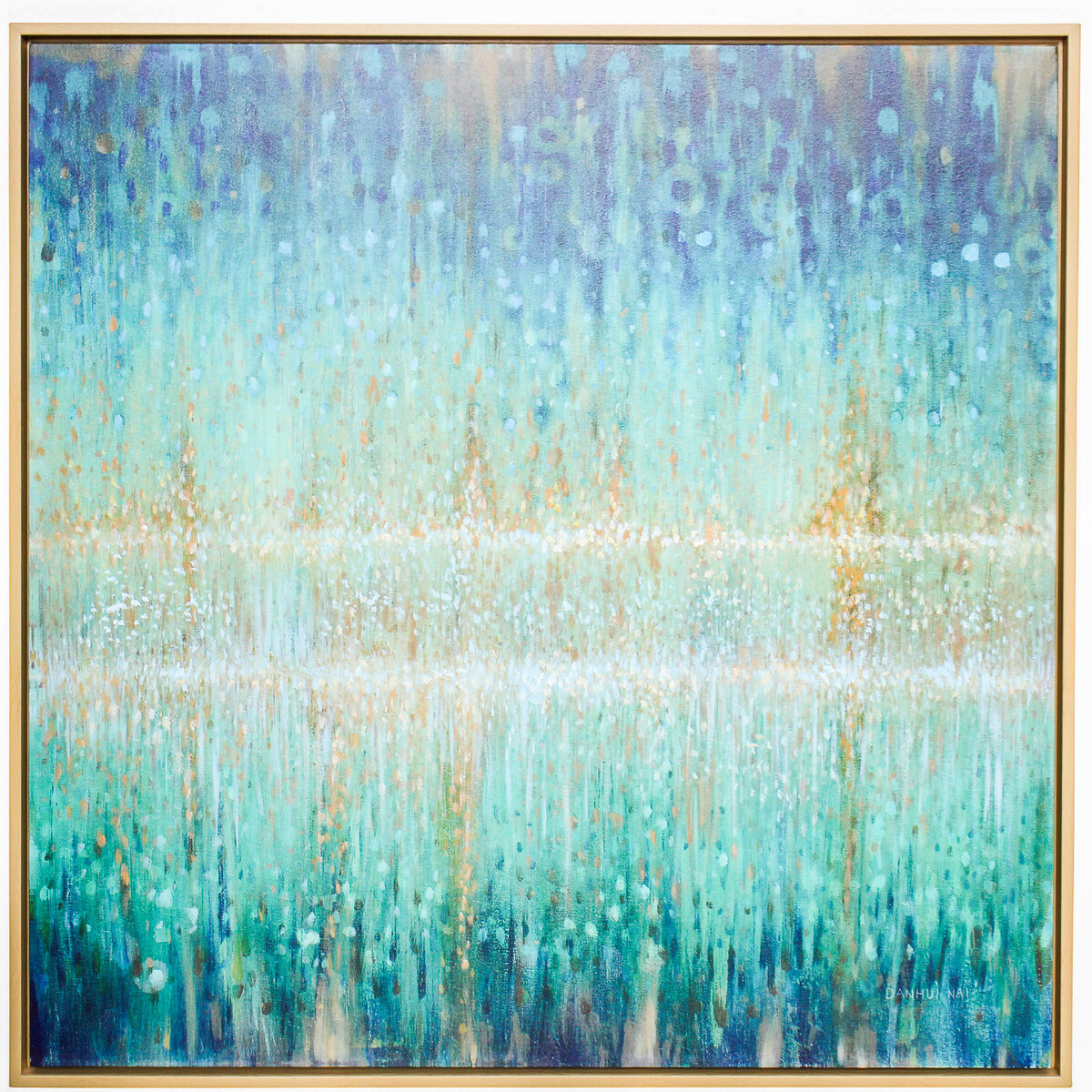 There’s something really special about the Framed Canvas Rain Aqua that catches our eye every time we see it. It’s got this incredible hand-finished paint effect - which means every single piece is unique. No two are alike. Sometimes, there’s just the tiniest difference in the finish. Other times, it’s almost a new painting altogether. That kind of individuality is what makes art like this so attractive to customers - whether they’re looking for something for their own home or an impressive gift. This one comes in at a generous 100x100cm, which feels almost the right size for a lot of living rooms or reception areas. The blue-aqua-green tones are beautiful and modern and suit everything from beachy homes to apartments with contemporary decor. We’ve found it pairs nicely with neutral or monochrome furniture as a standout piece too. The framed sides are resin and pine, which makes it really robust.