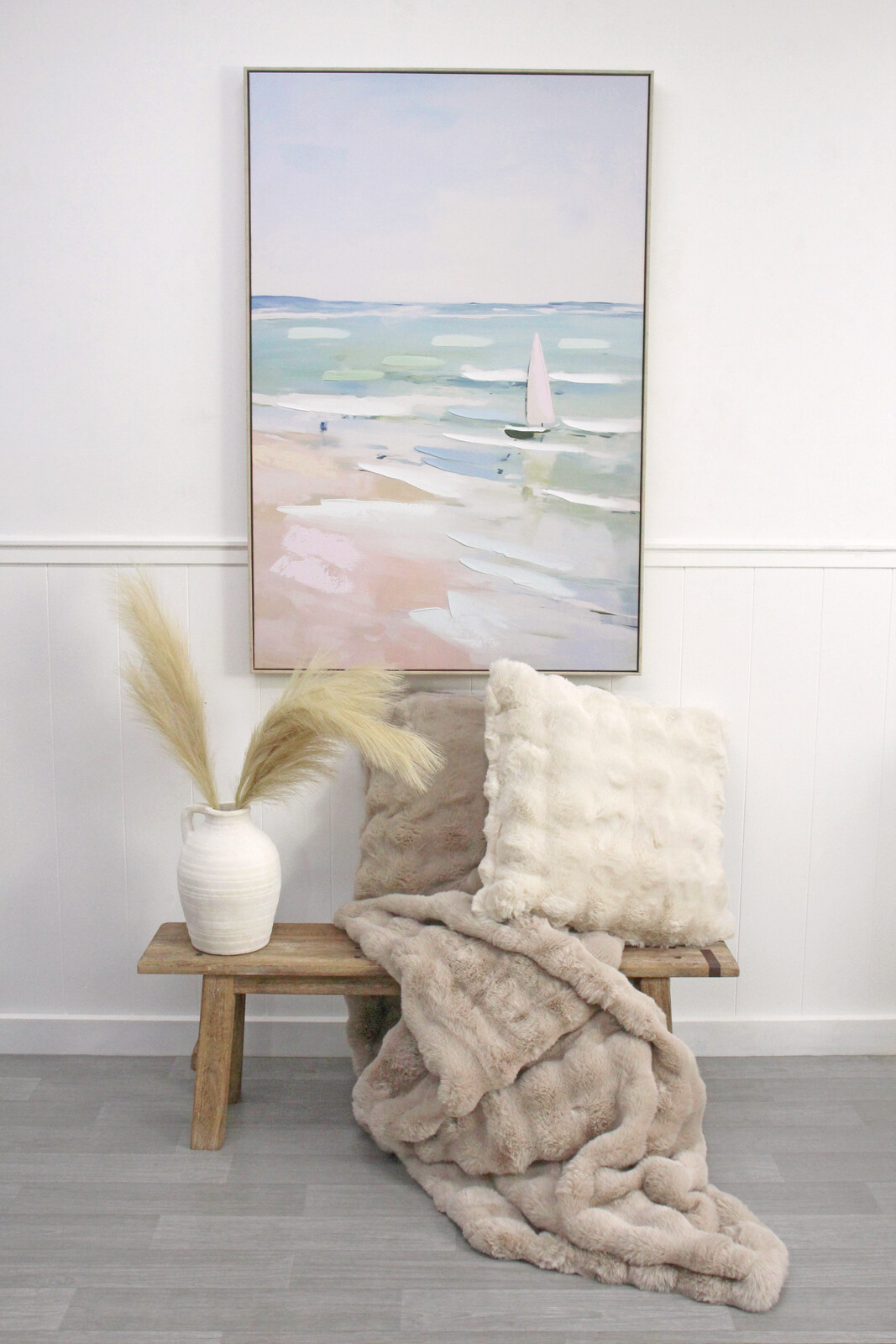 Framed Canvas Set Sail is such a breath of fresh air for any homewares collection - we keep coming back to that. The coastal breeze really seems to come through in every soft blue, pale green and sandy pastel stroke on the canvas. These 80x120cm pieces are something else up close. Hand-finished with unique paint or gel touches, no two canvases are exactly alike. That’s just the nature of individually crafted art.
