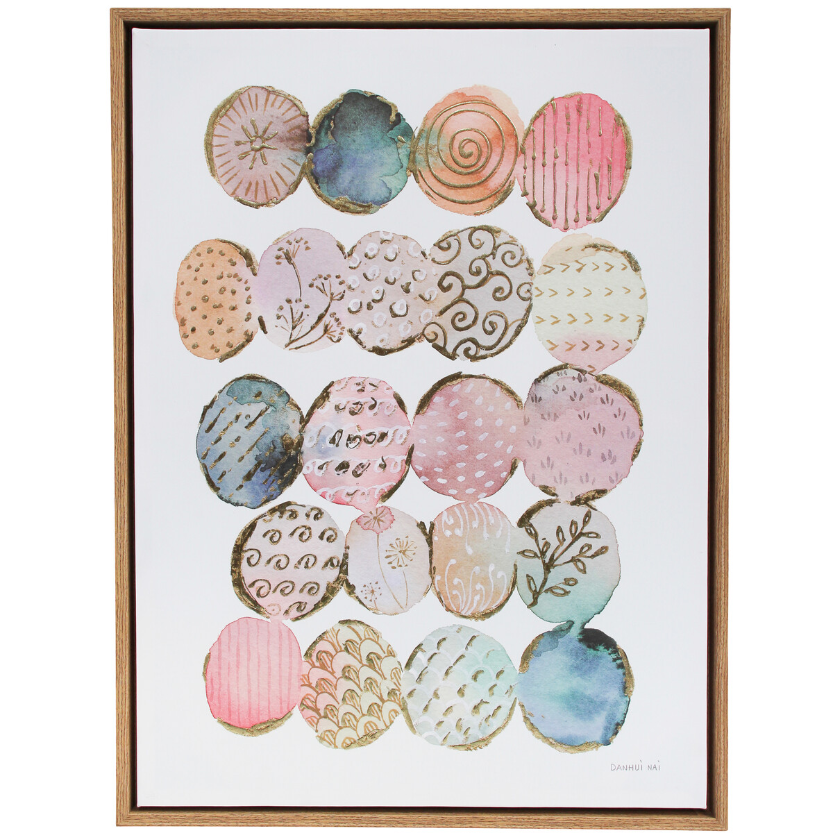 If you're a minimalist looking to add the perfect piece of artwork to your home, then we have just the right thing for you! This framed canvas is sure to add beauty and elegance to whatever wall it touches. Made sustainably with natural products like resin, pine and canvas, this artwork is a prime example of the spirit of modern art- simple yet beautiful. The soft pastel hues on the canvas combined with the circular shapes are sure to please all lovers of abstract art who like to perceive beyond the literal and assign their own meaning to art pieces. This canvas comes in a light wooden frame, so you don't have to worry about its durability and weight. A flawless fit for both office and home decor ready to intrigue and awe all the eyes it catches. The artwork also makes an excellent option to gift all your artsy friends and loved ones!