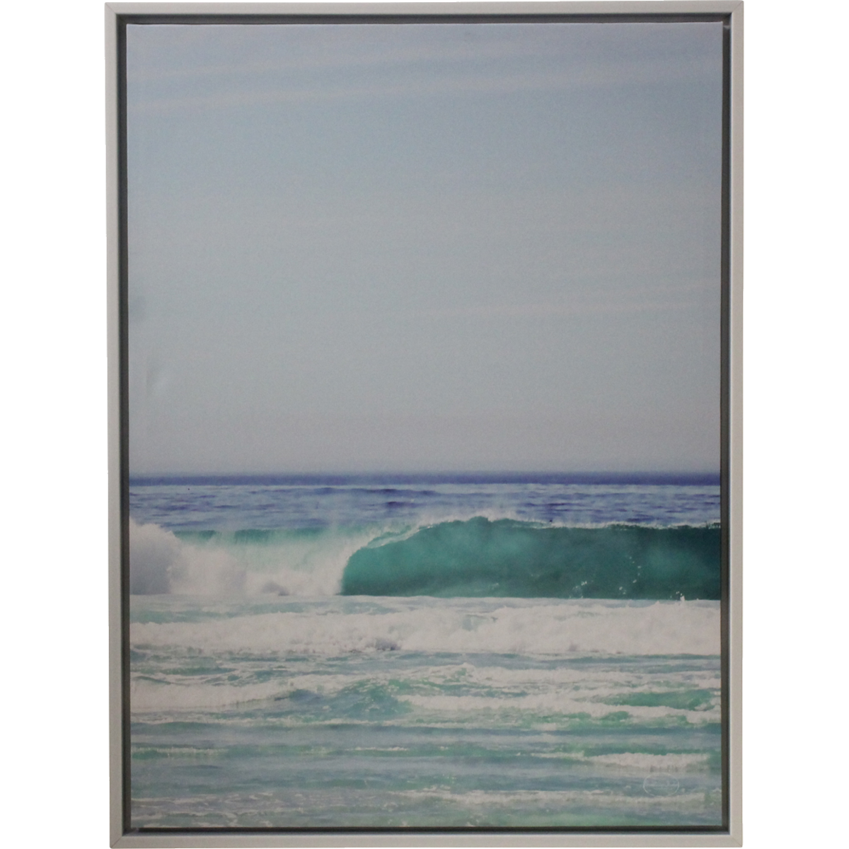 Bask in nature's beauty with this breath - taking framed photographic print, featuring gorgeous blue and white waves in different tones crashing in the sea. Its rectangle shape with blends effortlessly into both casual and formal aesthetics, while its natural colour palette pairs well with crisp white walls for a contrasting look. This wonderful piece will complement any domestic or retail outlet with its scenic motif and clean - lined canvas print that is a must - have addition to your decor. This display will look beautiful in your bedroom or office where you have a beach - inspired colour scheme and you can even hang it in the guest or master bath.