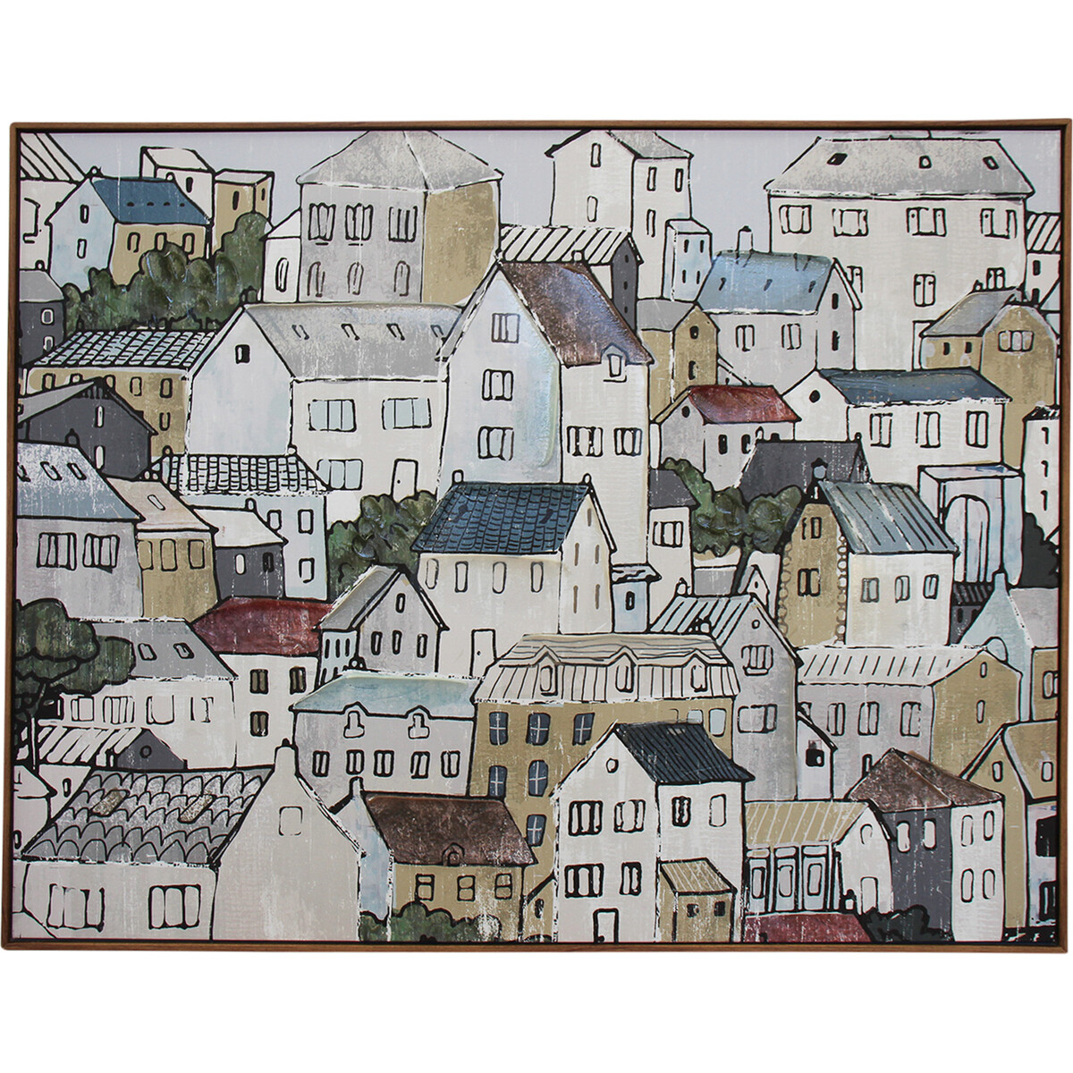 Creatively rendered with such artistic precision, the Framed Canvas Village is one artwork that your customers would spend quality time admiring. This is made possible through its colourful thematic rural preoccupation and the savvy combination of three high grade materials. The motif is drawn on durable canvas held firm by top quality resin and then framed on all four sides by 100% natural pine tree. It is made in an extra-large 90 centimetres long size in order to be able to capture every single detail.