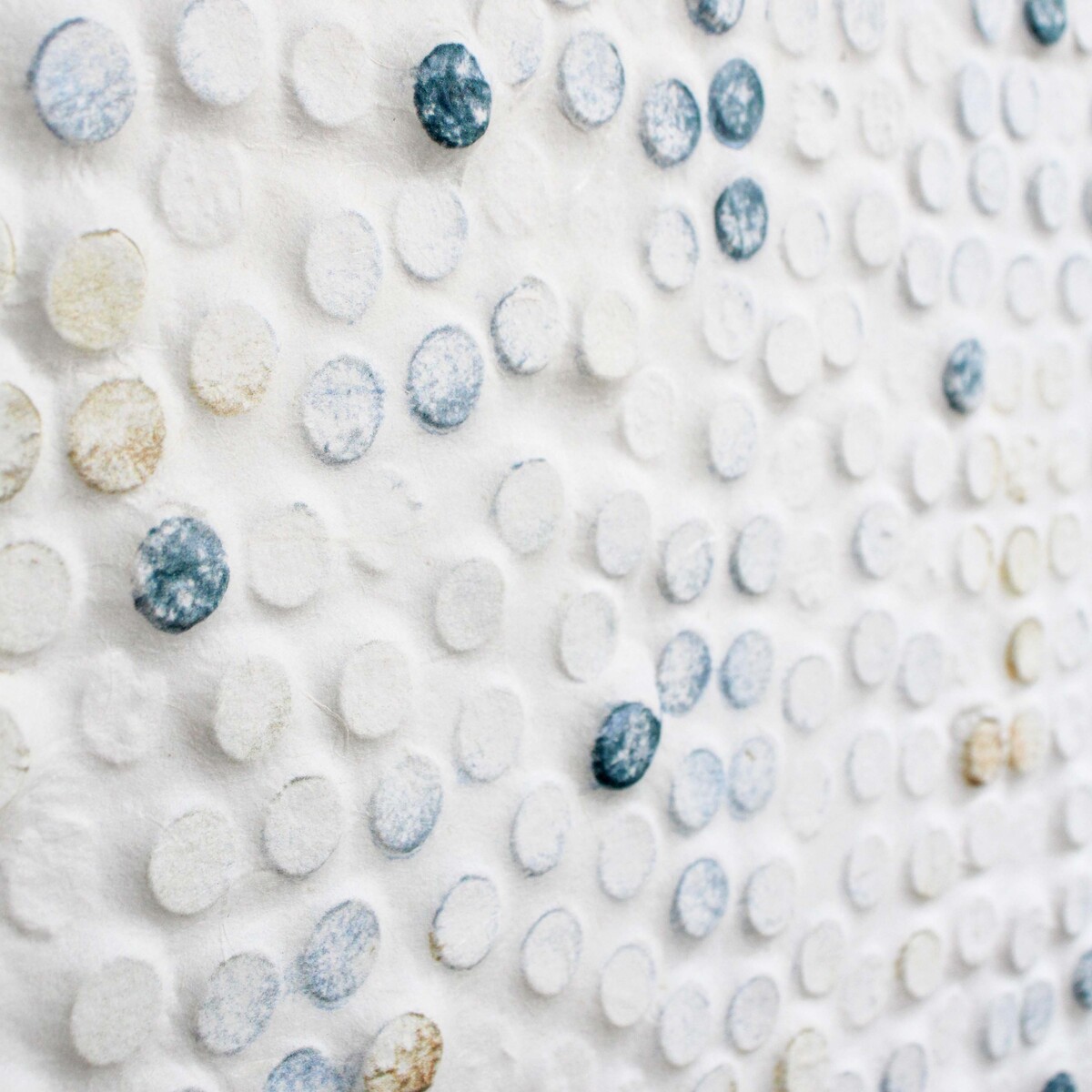 There’s a real draw to that tactile pattern and subtle colour palette. We sometimes say it’s a bit like modern art had a relaxing spa day. The fine gold-touched border gives it just enough structure too.