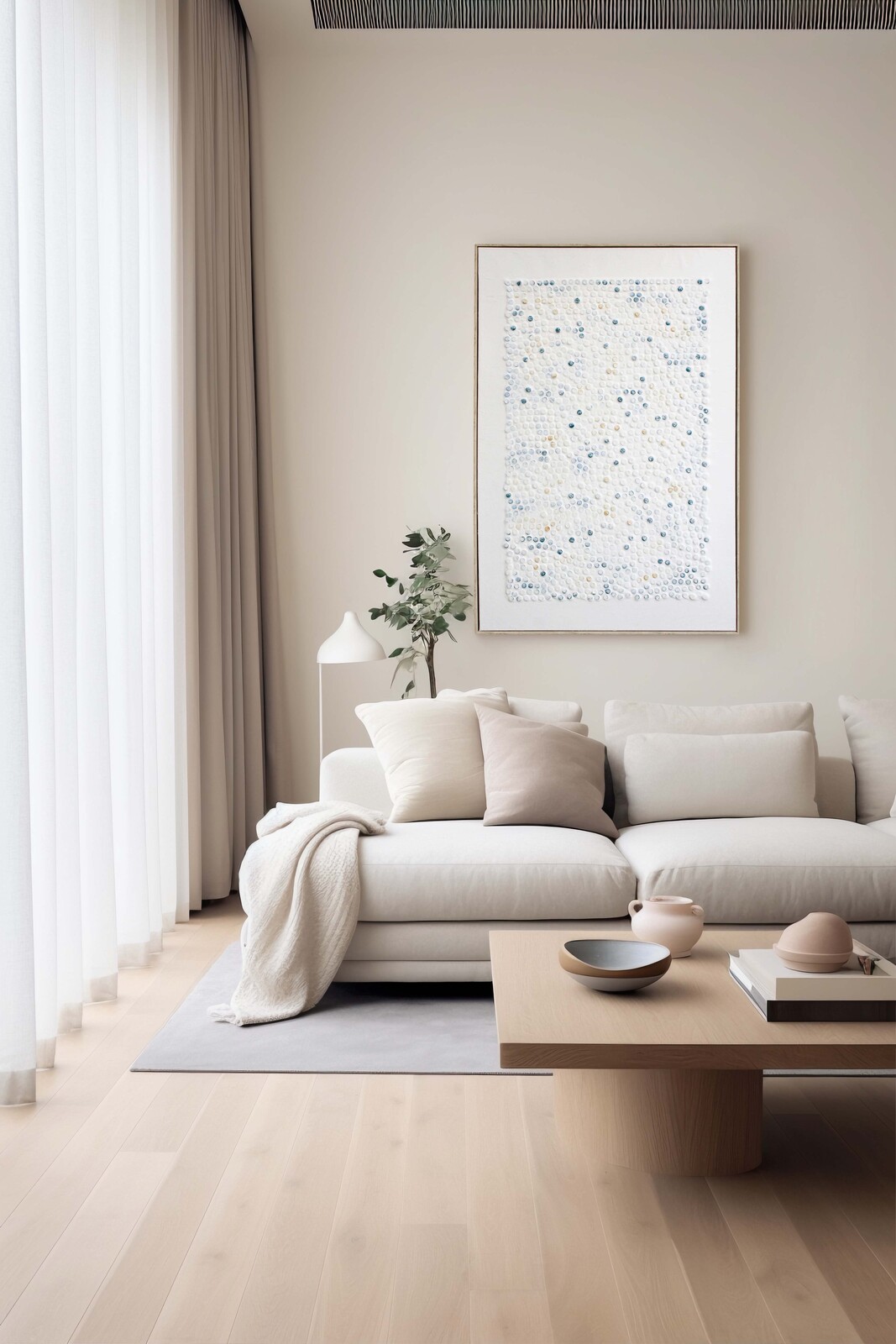The Framed Canvas Whisper might be one of the more quietly powerful pieces in our collection. It has this kind of serene presence, with soft blues and delicate whites, that tends to work with almost any interior you put it in. And the thing we really like is that textured surface - each piece is hand-finished, so there’s always this sense of authenticity to it. No two are quite the same.