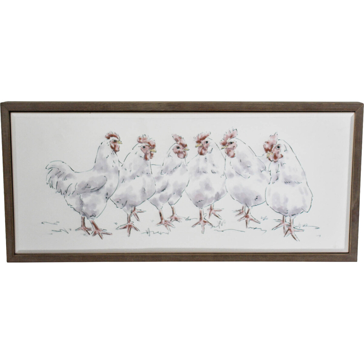 The Framed Chicken Cluster would be a perfectly functional piece of print artwork for customers looking forward to buying art prints with country motif for that impressive décor setting. This country motif print features 8 standing chicken birds in a row while they all look at the camera and say 'cheese' for that perfect snapshot. They are covered in white plumes which blend in perfectly with the white background on which they are painted. Their combs and feet are coloured in pastel pink while their pointy beaks are painted in yellow to complete the picture. This MDF framed decorative artwork would fit in with every decorative setting as it is coloured in a dominant palette of white.