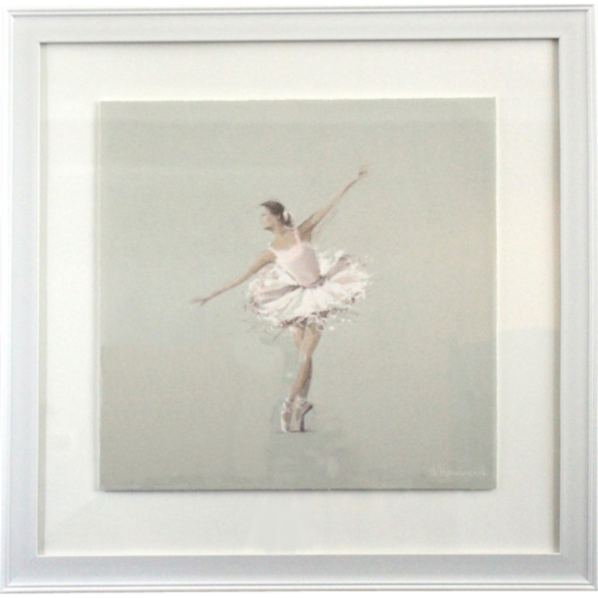 Printed on paper, the highlight besides the gorgeous dancer standing poised so beautifully, of course is in the play of form, light, shades and hues and this art work is a study in all of that. A single postured dancer. The lilt of colours, fading and blending and yet standing out -this is what makes such art great for any home. Despite the subtle hues, the brightness of white, the shades of greys and the off-white background seem sharp and rivetingly attractive. The white frame enhances the beauty of the white tutu the dancer is wearing. The perfection of proportion is reflected as well as the clarity of form. A wonderful means to enhance you vintage or traditional home décor. Any wall will be glad to hosts within as ethereal in beauty as this picture whose square shape has 49.5 cm dimensions.