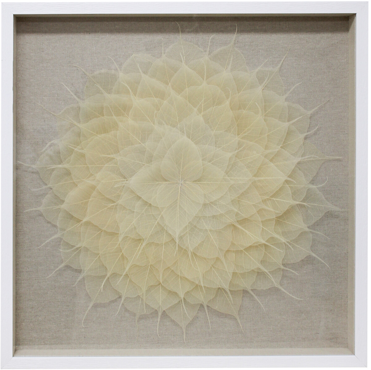 This framed artwork is as organic as anything natural can be. Linen has been used as a backdrop for the amazing concentric arrangement of dry leaves. Lifted only slightly away from the surface, each leaf can therefore show off its shape, and natural pattern despite overlapping with the one behind it. A simple idea that has been excellently brought to the fore. The piece has a frame invite which helps give the at work a natural depth and dimensionality therefore adding more to its beauty. 60 CM in dimension, this artwork is a great pick for your personal spaces, as much as it is for commercial ones. It will combine delightfully with all kinds of nature inspired art and helped make the space feel serene, calm, and harmonious.