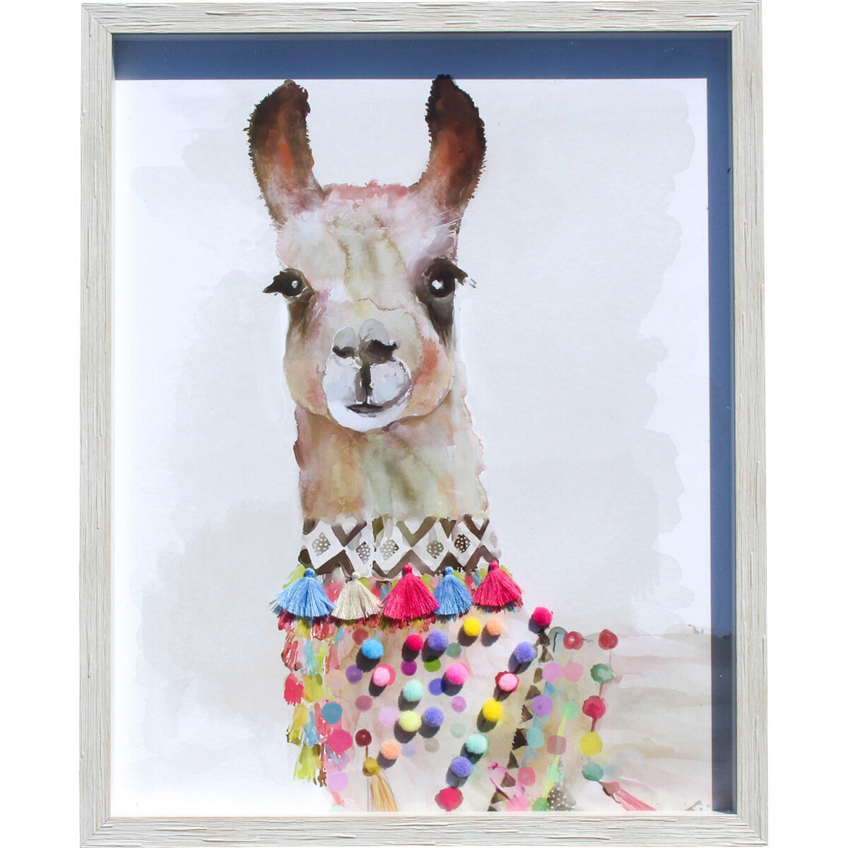 This funky Llama braid framed art has a colourful and eccentric design that has a watercolour-style llama illustration and is encased in a light-weight polyresin frame. Embellished with vibrant pom poms and tassels, this festive llama is ready for a parade, a picture or both!