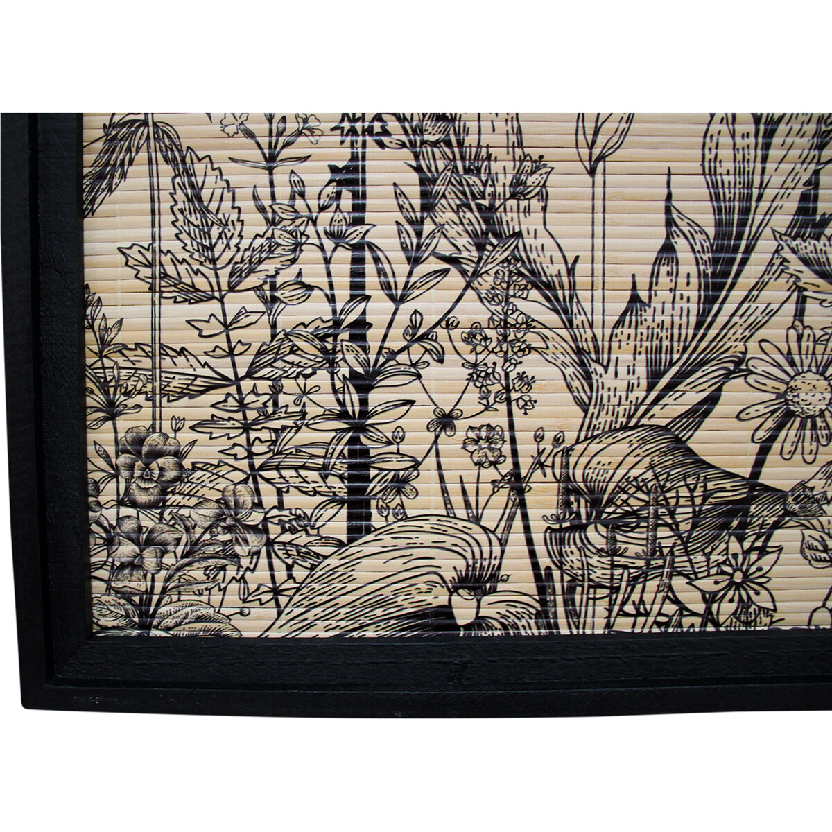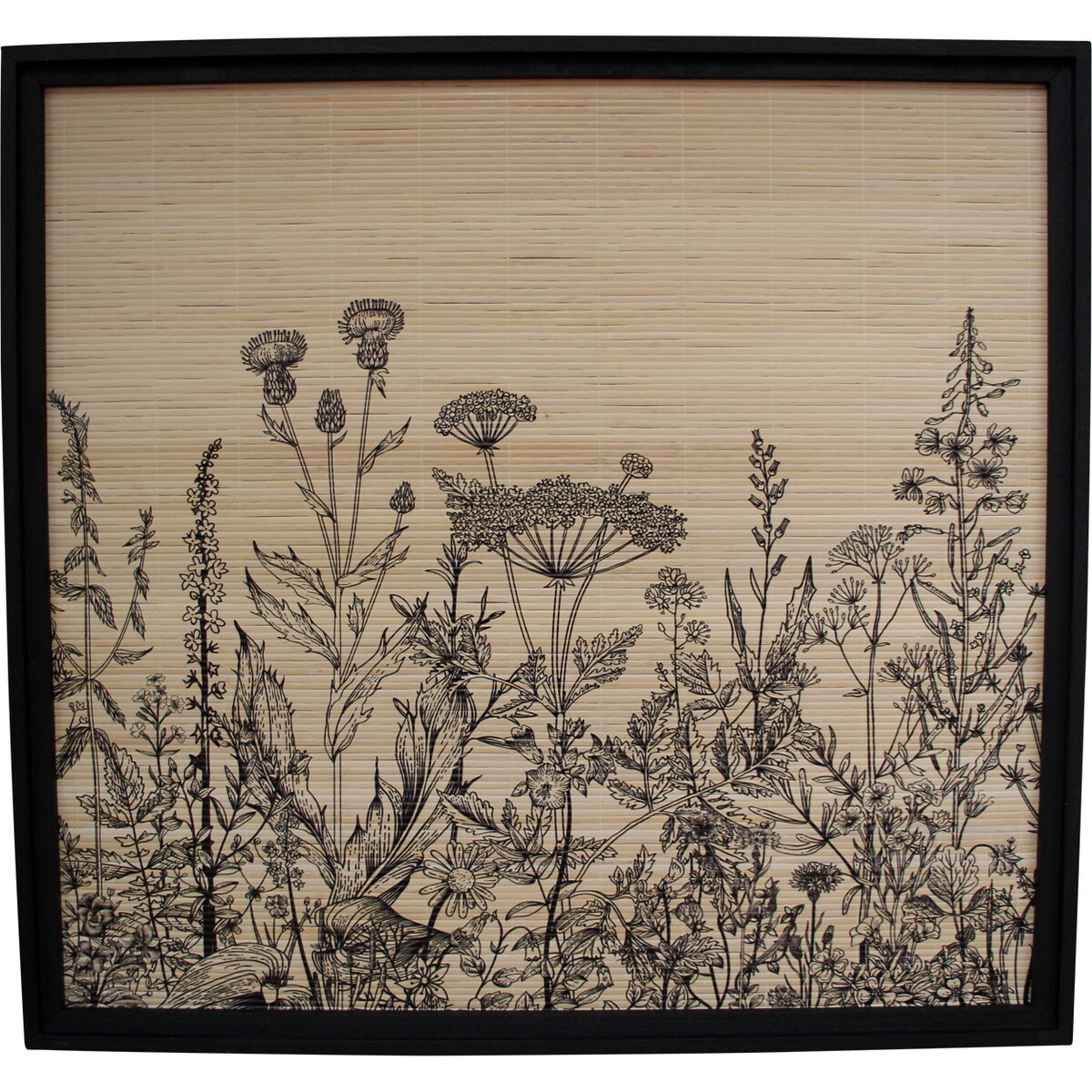 When opting for art for your home and spaces it makes more sense to go for something that is muted in colours and more basic in its theme as it would then blend in easily without clashing to much with a pre - existing decor or idea and here in the case of this print on bamboo that has been elegantly framed and presented, the effect would be truly eclectic. The delightfully designed art work has been given a dark timber frame that contrasts vividly with the more softer colours of the print itself and that helps give it more definition when placed on the wall. In case you happen to have a décor l4eabning towards the orient or anything connected with nature, this should fit in wonderfully well. Sized at 80 cm in length and 75 cm in height it does effectively cover larger to medium wall spaces.
