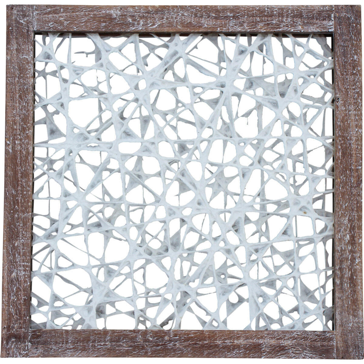 Made from parchment like paper-the pattern is truly a fascinating play of shape and form. The web like design is abstract and that brings with it a hint of modernity that is most appealing for homes in the urban setting or the ones that do not wish on ornate or elaborate styling. The 39 cm dimension square framed beauty is great for all those walls that need a touch of subtle design to break their monotony and since the same variety is available in various patterns, you could tame one with the other and create quite a fascinating display for larger wall spaces. the wood look frame is made from MDF, while the backdrop in white lifts the design made from paper to quite another level of beauty. The glass cover on the top will ensure that the paper made design has longevity.