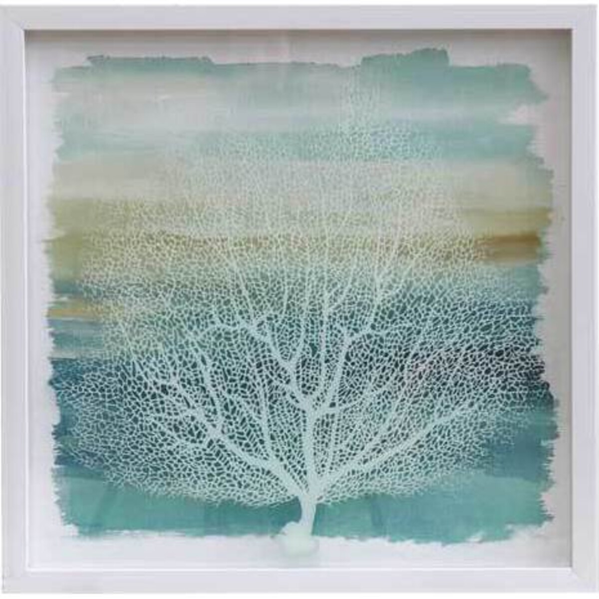 This print on paper is highly colour rich which is why it has been able to exactly replicate the gorgeousness of the underwater world with such perfection. The fan shaped coral makes the entire picture come alive with such a delicate image. The frame in white off sets the muted shades of blue and more blues that the print has. The white frame is slightly raised that gives more depth to the picture as a focus. The dimensions of this print at 60 cm makes it quite a prominent artwork to display on a moderately large wall and thus it would especially look great behind the main sofa or a wall that needs a certain focal point. The print on paper build in a certain peaceful ambiance that come naturally with things related to the deep seas.