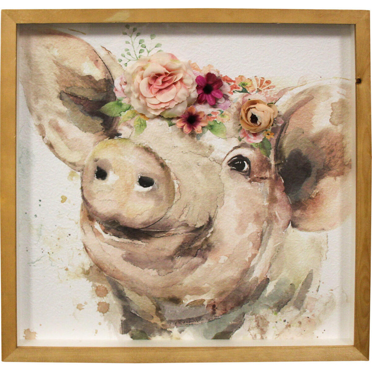 They make a cheery splash of colour and form on the walls-art of this nature invite that cottage and country kind of charm that connects with your urban setting as much as with a suburban style look making it feel fresh and more earthy. This floral decorated little pig will stela your heart with its enigmatic face. Printed on resin covered with glass and framed to give it a great finish-it's a great means to help update the look on any wall.