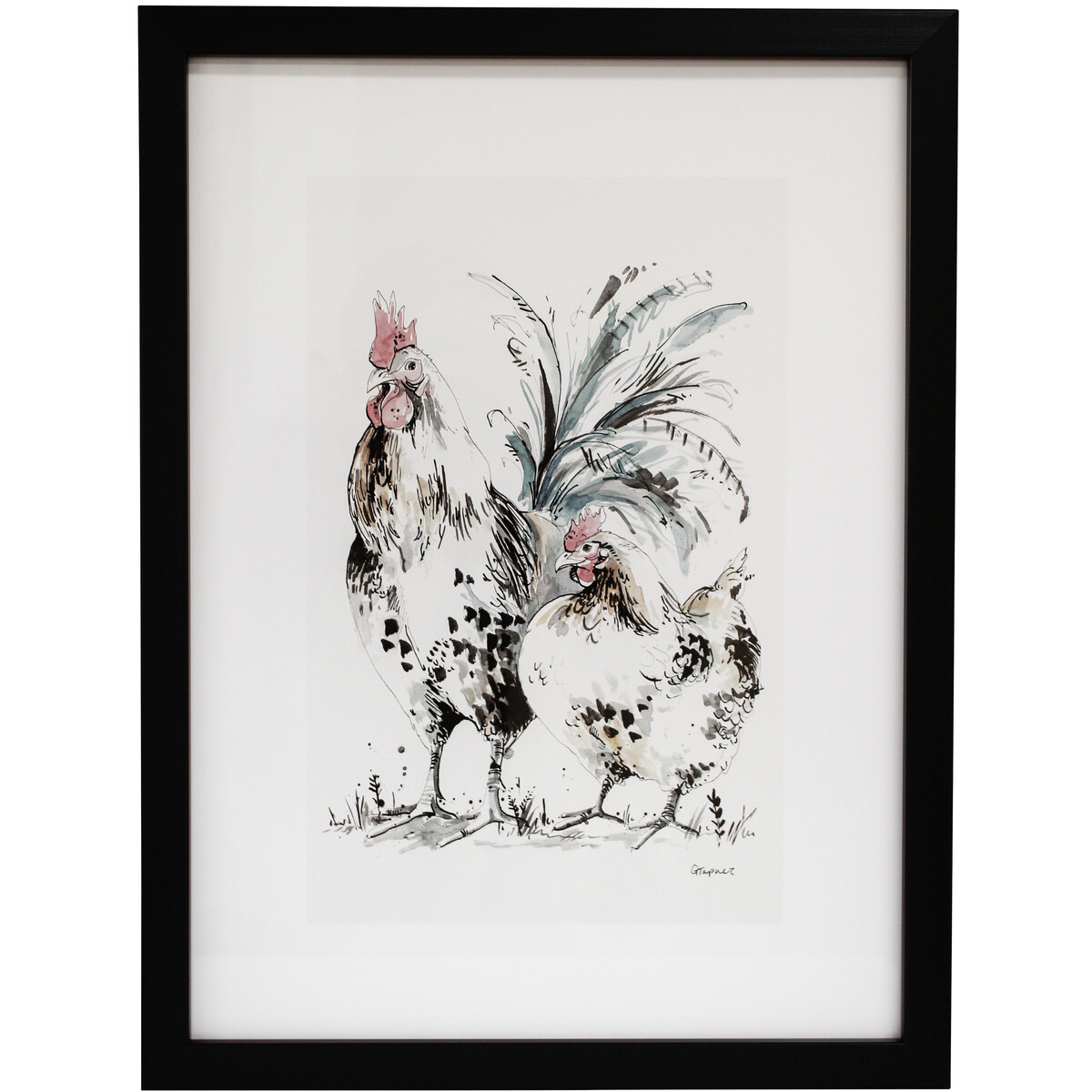 Suitable for gifting to family, friends, and every other loved one, this Framed Print Best Mates has a delightful decorative allure as well as a sweet sentimental underlying implication. This paper printed artwork showcases a hen and a cock standing side by side in a lovers’ pose. Although cocks are known for being promiscuous, this particular abstract cock seems to be different as he stands faithfully by the mate’s side. This is why it would be suitable as a lovers’ gift item. It measures 30 centimetres in length and 40 centimetres in height.