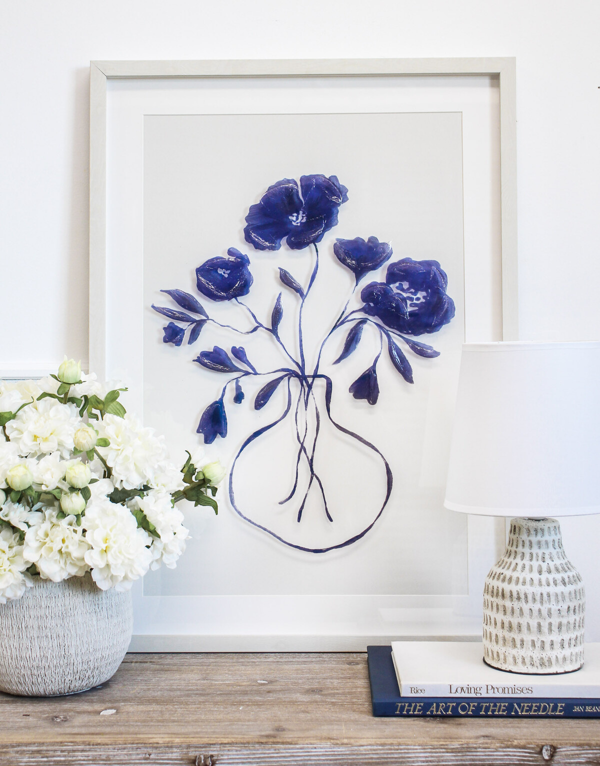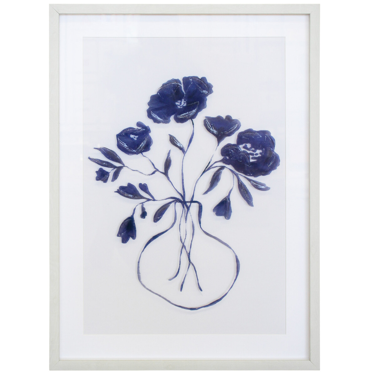 Hand finished, one-of-a-kind prints just have something extra, don’t they? We love that every Framed Print Blue Vase is totally unique - there’s a freedom in knowing your customer can take home a piece that won’t look quite like any other. This isn’t your average vase print either. The dark blue hand finished paint or gel flowers give it some drama and high-contrast against the lighter glass, resin and paper design. We like how it looks set above light neutral wood furniture or clean white spaces, but it would also pop against grey. Not only does it mesh well with minimalist or Japanese inspired designs, but it can be paired with modern whites or more traditional warm interiors too. With such a classic subject as flowers and a 50x70cm frame, this is definitely an easy add-on to any living space, kitchen, hallway or even bedroom.