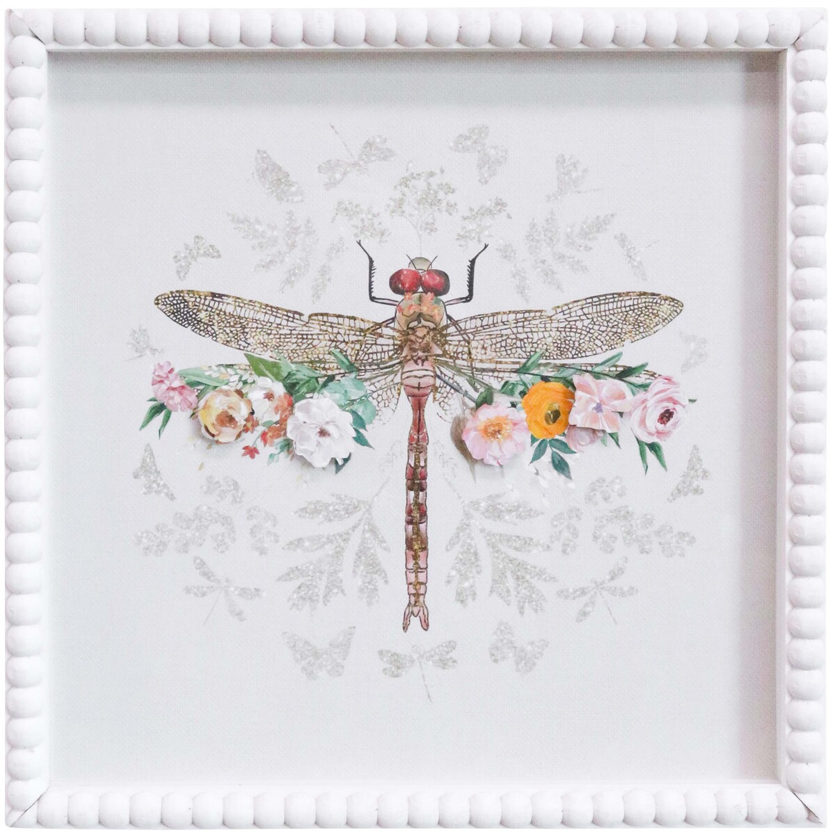 This Framed Print Floral Dragonfly is one we keep going back to - it’s interesting, beautiful, and done so, so well. What makes it work is the dreamy dragonfly motif at the centre, with handmade paper flowers that sort of leap out at you. When paired with the white beaded frame, the effect is both modern and whimsical - and really quite special.