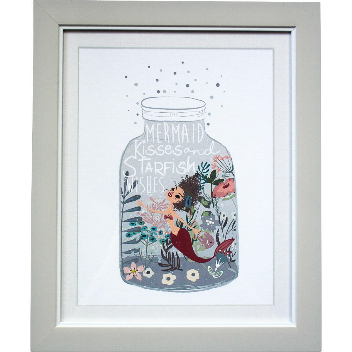 Framed art is a great means to bring to life an idea of beauty and this is one such art work that shows off the mermaid figure in a bottle. The framed art is all of 34 cm in height and its width is 28 cm and its the simple yet enchanting kind of seaside and oceanic presence that makes it so very special. Add this to spaces that need a main kind of look. The soft colours and the presence of a mermaid makes it such an adorable display on the walls. Will look great behind consoles, behind the sideboard and such wall niches that impact your oceanic look d?ɩcor. The frame given to the piece adds to a clear definition of what the artwork is all about. The print is detailed with all tiny detailing perfectly captured. The soft dove grey coloured frame adds to the beauty of the piece.