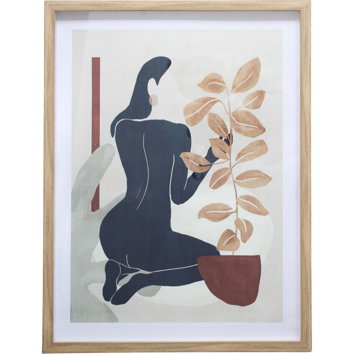 The modern human society has increasingly continued to advocate the planting of trees and growing of various plants so as to negate the effects of global warming. Aside the environmental benefit, we Australians in particular love to have our very own garden or at least keep some plants especially flowers around our environment. It is this same modern culture that this Framed Print Modern Figure portrays in an aesthetically charged manner. The canvas painting features a modern woman kneeling down beside a potted plant while tending to the plant.
