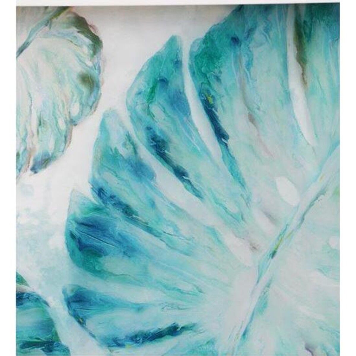Place this print on wood that seem to convey a classic kind of beauty - that of nature in all its simplicity. The artist has used just a little portion of the Monstera leaf to bring out the beauty of form and shape through hues and colours that allow the creation of the shape. Here is an excellent example as to how one can use small pieces of art that has been treated with such a lot of imagination. The framed picture is all of 40 cm in height and 40 cm in width and has been given a sturdy white frame. The covering in glass gives the picture more depth and that adds to its dimensionality. Could be placed on any wall in your home or office. The subject of this art being the kind that it could be used anywhere. Add this to your living room and one could create a collage of such pictures available from Lavida. Will blend in with all kinds of décor and the colours prominently featuring is the kind that can be used anywhere.