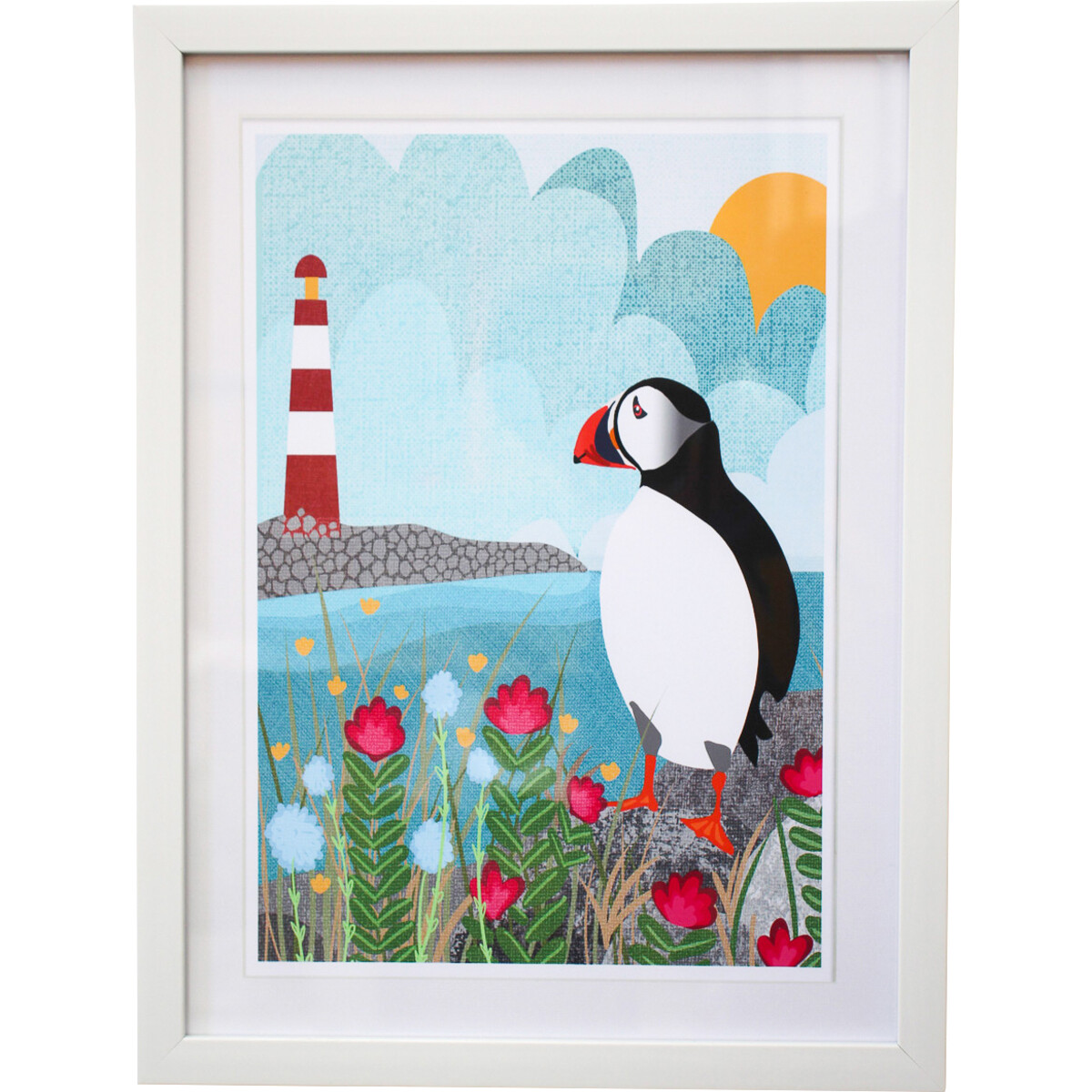 Homeowners who desire to enthral guests can opt for this bespoke tropical piece. For an effortless breathtaking view, fill up an entire wall with this wall art juxtaposed with other wall hangings, photographs, and ephemera. Puffin is an incredibly friendly and magnificent bird that captivates tourists with their natural allure and visual appeal. Framed Print Puffin makes a terrific gift for the nature enthusiast. Give kids a sky-high adventure with this Nature's most fascinating birds. Its picturesque profile makes it perfect as a nursery centrepiece or as a masterpiece headboard in the children's bedroom. Its MDF board is primed to stand the test of time and also makes the graphics pop.