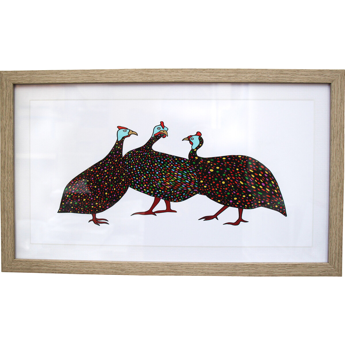 At 30x50cm, it’s ideal for filling narrow spaces without taking over the whole wall. The glass protects the print, so it’s safe for homes with kids. That subtle frame is resin and MDF - durable and easy to hang. We’re always surprised by how many people stop and ask about it. But mostly, we just love how these gentle Guinea Fowl seem to bring a bit of fun back into design.