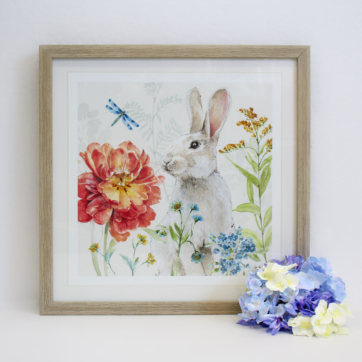 If your wall feels empty, spice it up with this cute bunny print. It's elegant and stylish while also being subdued so it can fit the style of any house decoration you already have. The canvas and frame are made to be durable against dust and wear and tear. It will be a fixture on your wall for as long as you have it. It is perfect for putting up on a stairway, kitchen or living room wall to add a bit of ambience to your room. In order to effectively optimise the elegance that accompanies it, it should be strategically positioned in a location where its glamour and elegant appearance will complement the decoration of the room. This paining's aesthetic matches a baby room or a living room with chic decor and blends in seamlessly. This painting also makes for a great gift for friends and family who are ardent nature lovers.