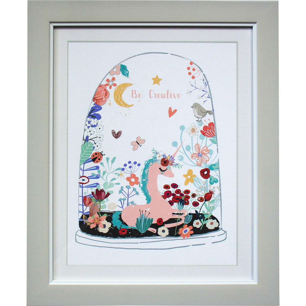 The frame given to the picture has a lovely soft grey colour that contrasts softly with the white of the background in the picture. A gorgeous water colour that has been printed on paper, given a sturdy MDF made frame that adds a lot more definition - this enchanting picture will be a great pick of you wish to make your little girls' room wear that look of wonder and magic - after all with a creature as endearing as the unicorn you can only bring that sense of wonder and enchantment into the space. the size too is perfect to fit across a small to medium sized wall space - you have several such mythical mermaids and unicorns pictorially displayed in several art works on offer from Lavida.