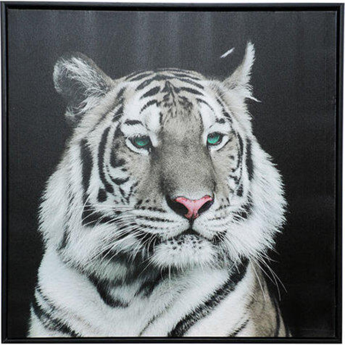 Seldom do you find creatures from mature impact you this much, yet when it comes to the Tiger, one stops to look - perhaps it is the tawny eyes and the fire within, or the boldness and strength of its form or the very fact that it symbolizes the very same nature which like itself is endangered, makes it a covetable piece. The canvas brings out the finer lines of the form, the eyes and its glow, the fur in stripes and the mood or posture that has been so perfectly captured. The beauty of natural themes can never miss the mark and in the case of this canvas print, the very boldness of the image left in its rawest possible form is enough to create an impact. The canvas is square with 60 cm dimensions, making it suitable for all kinds of spaces that could do with some highlighting. The frame gives the piece a neat and finished look.