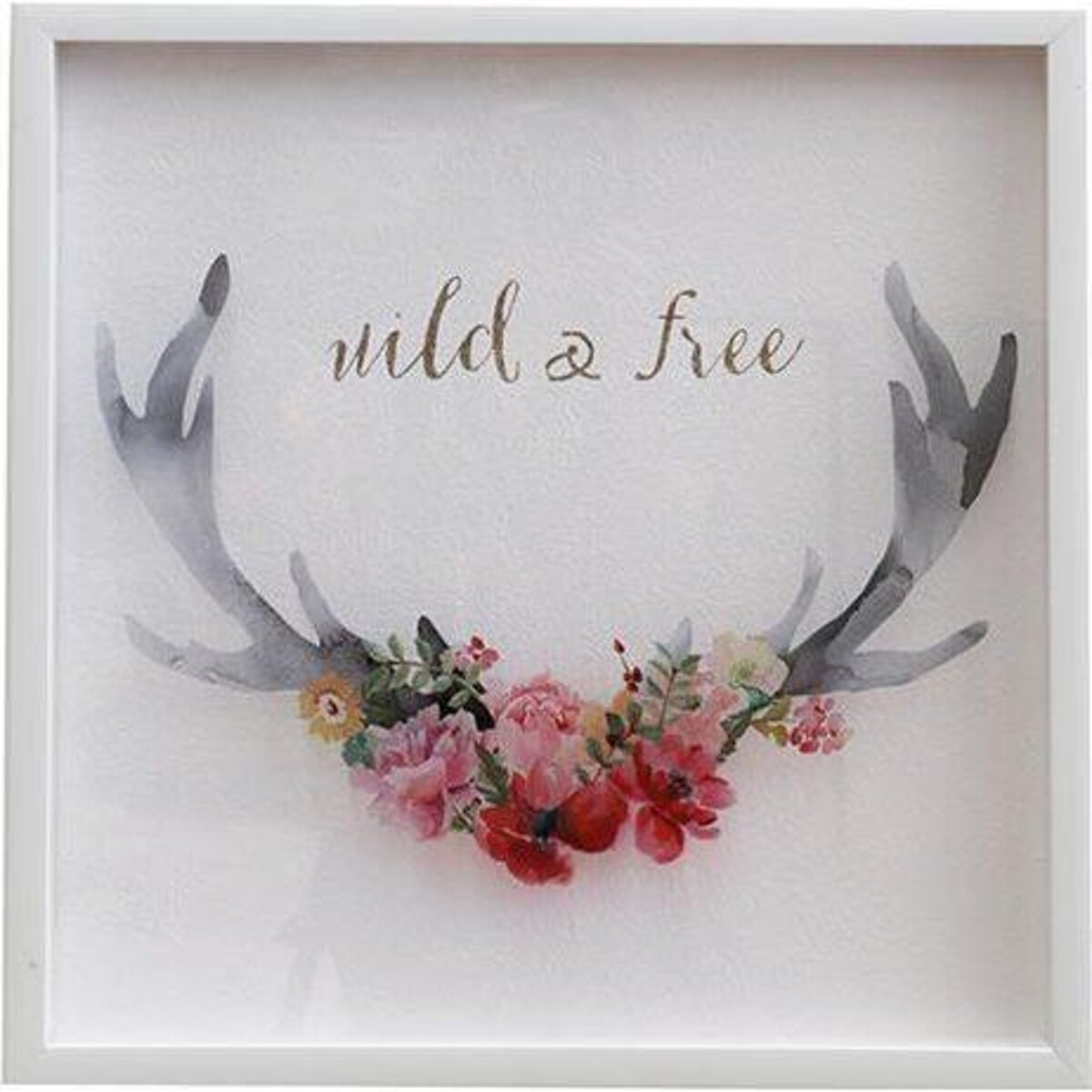 A symbol of eternal youthfulness, the lovely picture of beauty - flowers and the stag horn - wildness conveyed through the handsome horns and the beauty of the spirit conveyed through the flowers that are worn around it. This picture is a message that will be loved by all who care for modern interpretation of art. Hand selected wooden plaques have been given a paint treatment and then printed to such a perfect resolution of colour and form. The plaque is framed so as to make sure that the art deservingly gets its precious little space feel more secure. It also adds more depth of the visual. The white frame is molded from MDF, while the printing in such fine manner has been done digitally. A gorgeous addition to any space that you wish would convey the feeling that you hold dear in your heart. One could present it to a teenager just beginning to try his or her fledgling wings. This 50 cm high and 50 cm wide square frame would be lovingly accepted by any décor because of its closeness to a nature theme.