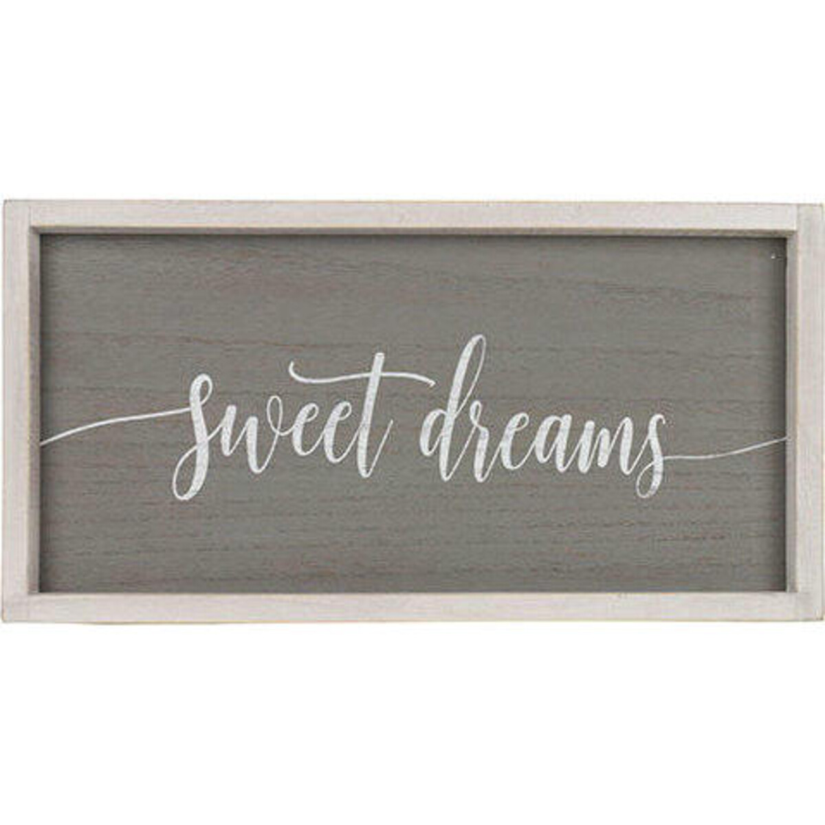 Add a touch of sweet comfort to your space with this simple little wall piece that carries with it a touch of indulgence. The wooden plaque is large - at about 47 cm in length and 25 cm in width, it can grace a wall right above the bed and make the space seem so calm and serene. Would look lovely above the bed - especially in the children's room where such peace is needed for their sleep time to be quiet and filled with the sweetest possible dreams. The sober colour palette on which the words are painted in white adds to its attractiveness and a somewhat vintage kind of appeal. The white frame while not being too broad makes the look more well defined and all the more focused. Will be great for the wall spaces that need a touch of informal grace and can thus be part of any bedroom that needs a touch of accent in any space. Go on indulge your spaces especially with a nursery or a new - born's room.