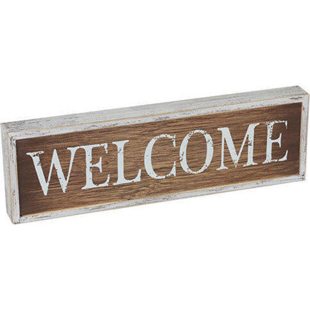 There is a classic vintage look welcome sign crafted meticulously so as to build in the look of warmth and hospitality that any home wishes to wear. Welcome your guests with this message as they enter your home and it will surely resonate beautifully with the rest of the décor. Made from weathered wood, the signs of age making the look graceful and the touch of antiquity purposely added so as to make one feel that this home has always held its doors open for friends and all are welcome. Can be placed on the console and be visible as people enter the home. The length of the piece is 30 cm and its height is 10 cm, while its depth at 2 cm makes it easy to prop up on its side. The white border defines its looks and highlights its rubbed and peeling paint effect.